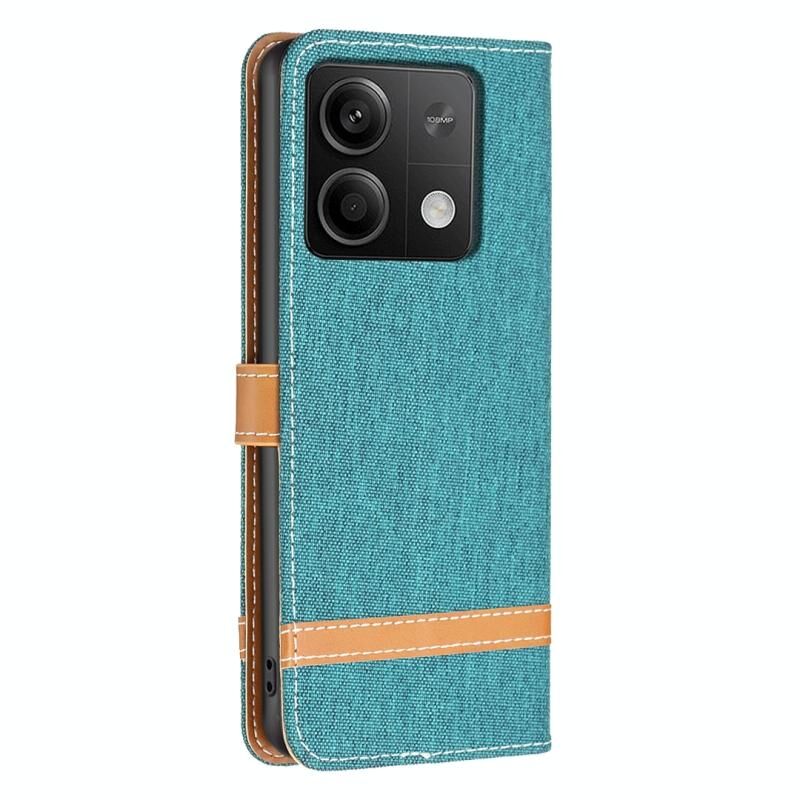 Θήκη τηλεφώνου Xiaomi Redmi Note 13 σε χρώμα σκούρο μπλε, με υφή denim και δερμάτινη υφή (Color Block). (πράσινο)