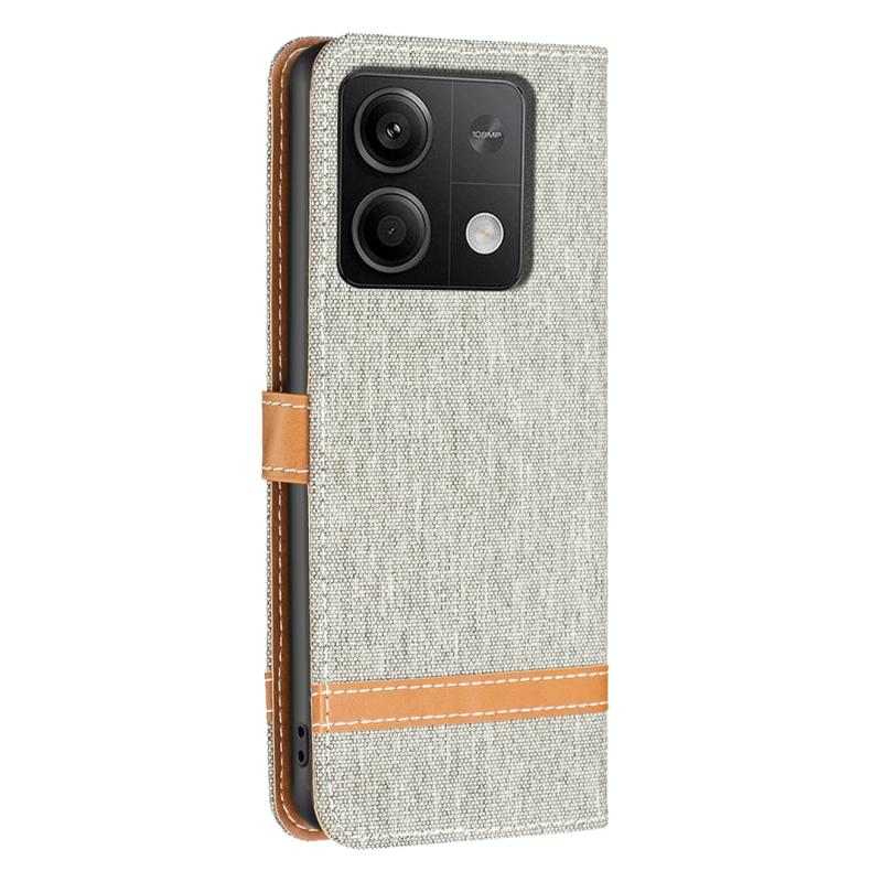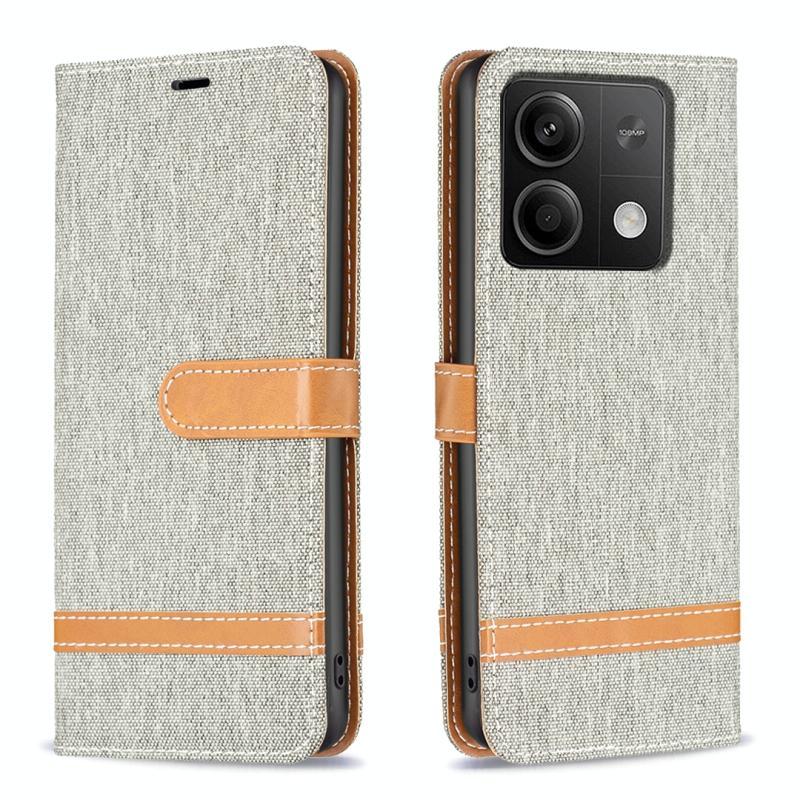 Θήκη τηλεφώνου Xiaomi Redmi Note 13 με υφή denim και δερμάτινη υφή σε μπλοκ χρωμάτων (Γκρι)