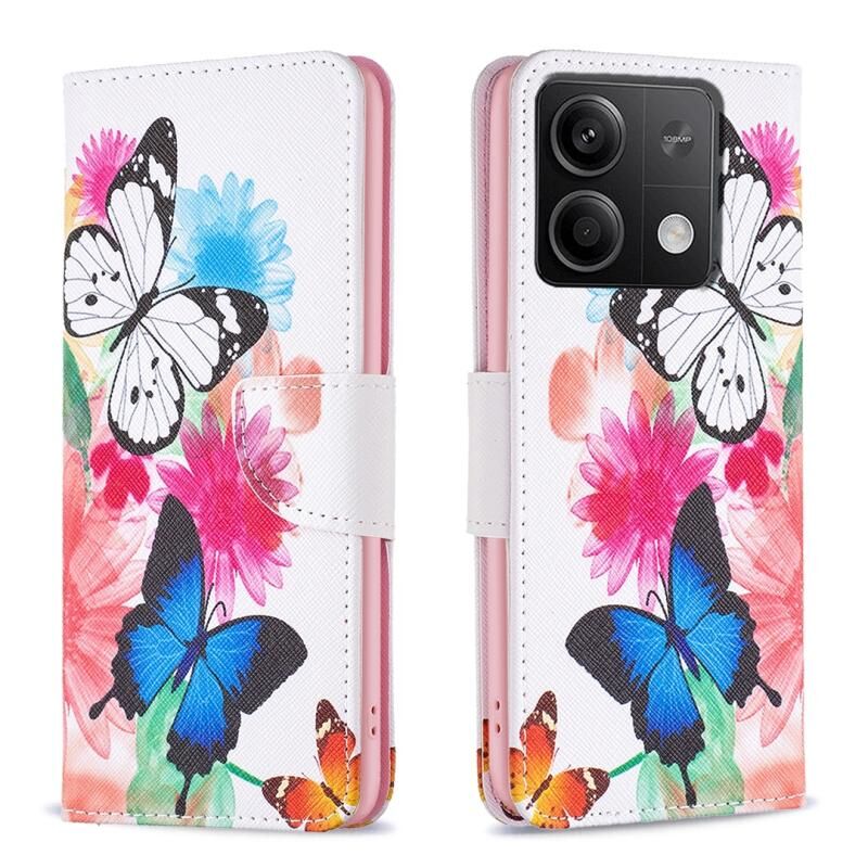 Θήκη τηλεφώνου δερμάτινη με πολύχρωμο σχέδιο (πεταλούδες) για Xiaomi Redmi Note 13. (Κόκκινο)