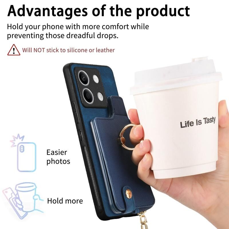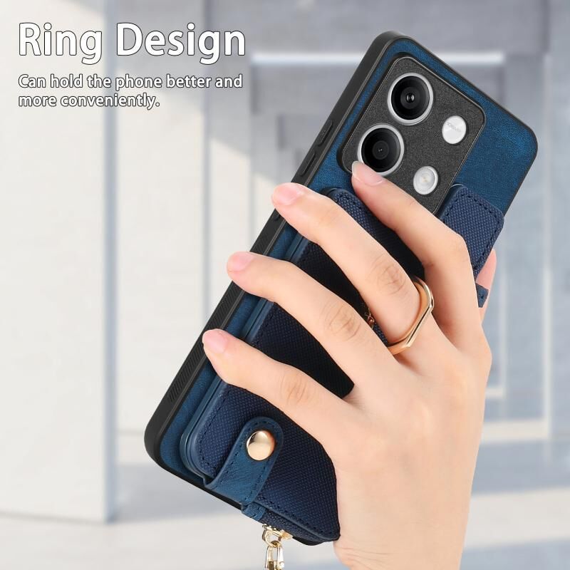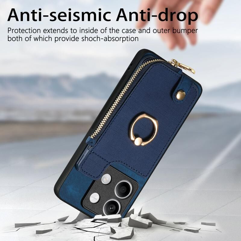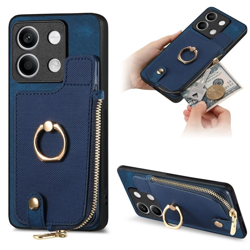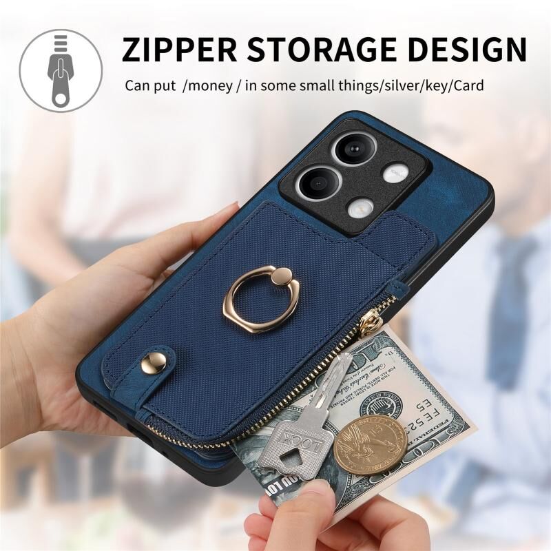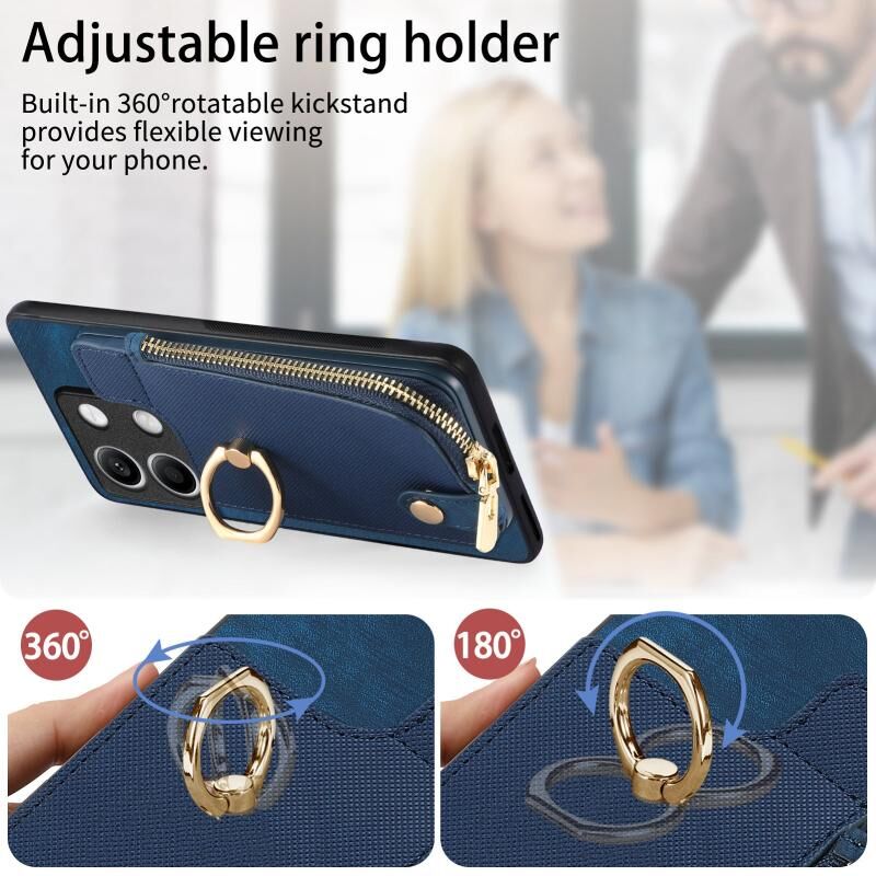 Για Xiaomi Redmi Note 13 Cross Δερμάτινο δαχτυλίδι κάθετη φερμουάρ πορτοφόλι πίσω υπόθεση τηλεφώνου (μπλε)