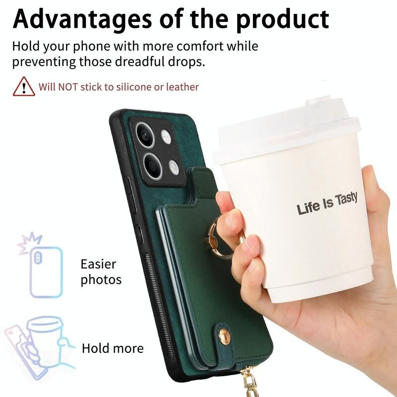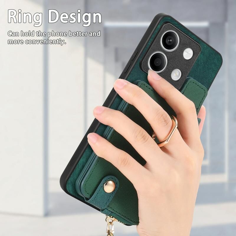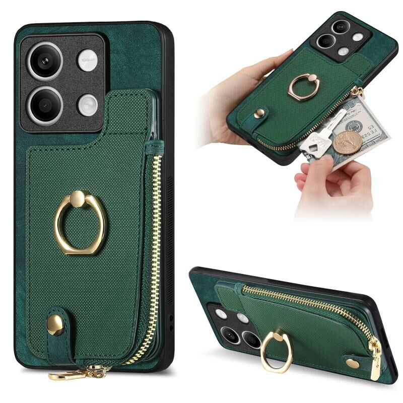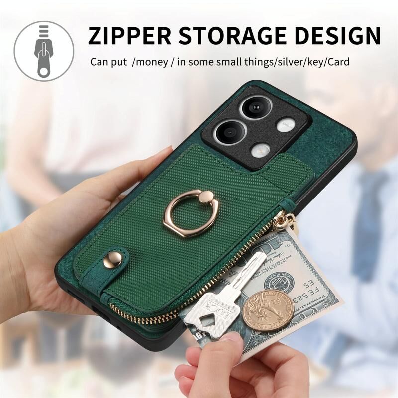 Για Xiaomi Redmi Note 13 Cross Δερμάτινο δαχτυλίδι κάθετη φερμουάρ πορτοφόλι πίσω υπόθεση τηλεφώνου (πράσινο)