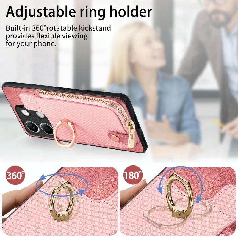 Για Xiaomi Redmi Note 13 Cross Δερμάτινο δαχτυλίδι κάθετη φερμουάρ πορτοφόλι πίσω υπόθεση τηλεφώνου (ρόζ)