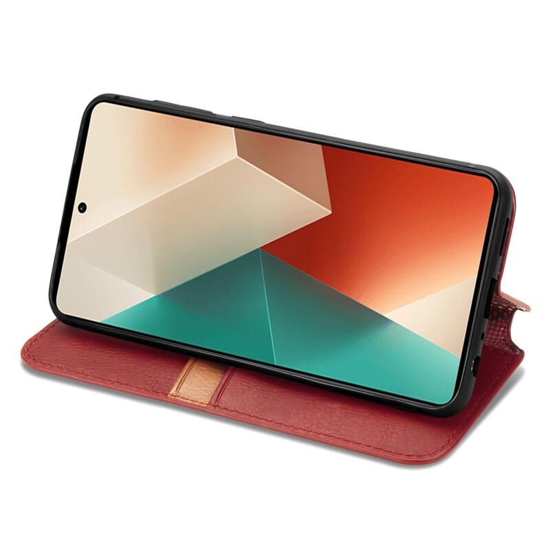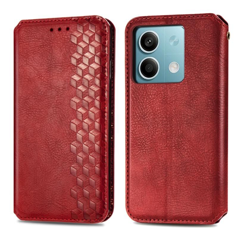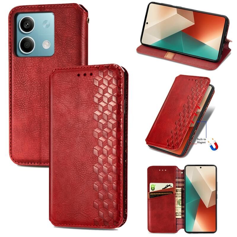 Για Xiaomi Redmi Note 13 Cubic Grid Pressed μαγνητική δερμάτινη θήκη τηλεφώνου (κόκκινο)
