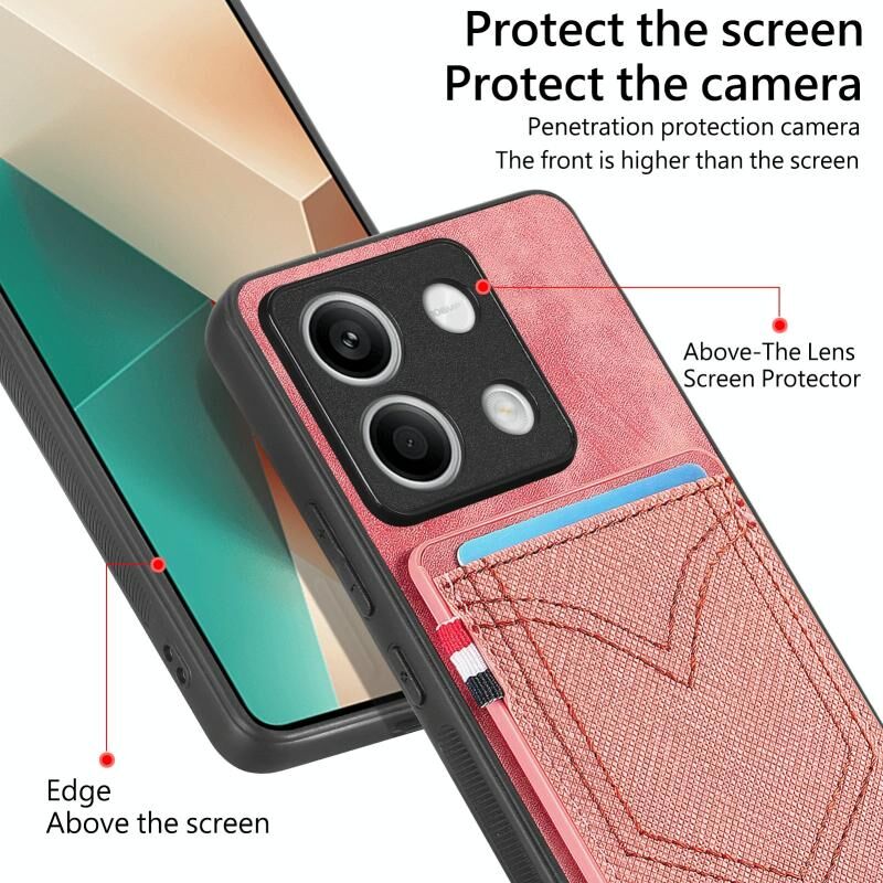 Για Xiaomi Redmi Σημείωση 13 Denim Υφή δέρμα δέρμα τηλέφωνο υπόθεση με υποδοχή κάρτας (ροζ)