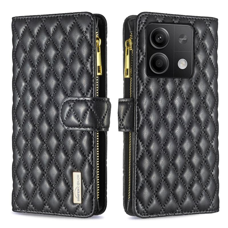 For Xiaomi Redmi Note 13 Diamond Lattice Zipper Wallet Leather Flip Phone Case(Black)