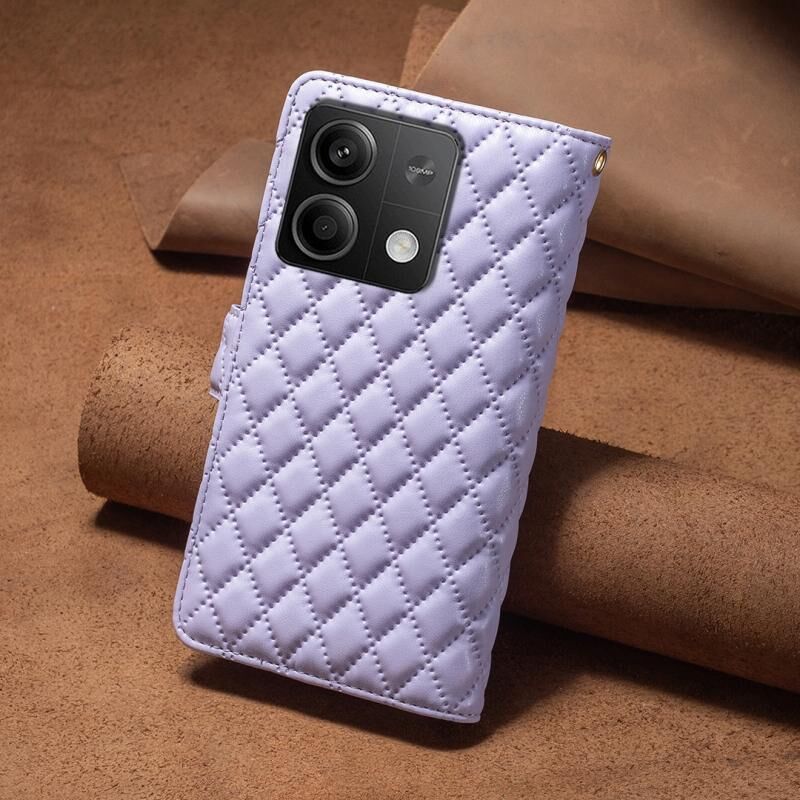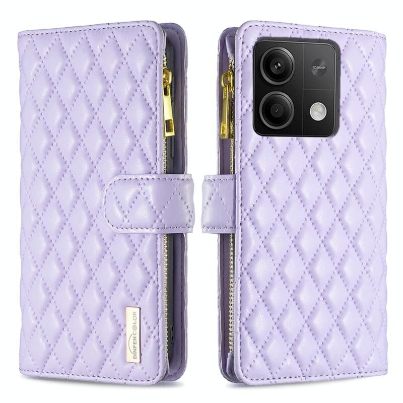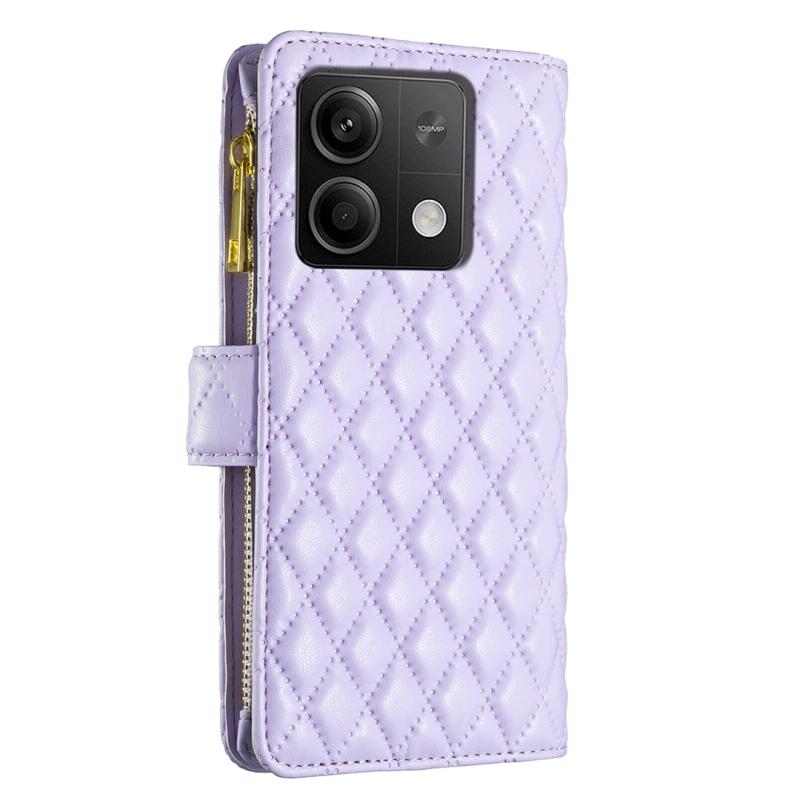 For Xiaomi Redmi Note 13 Diamond Lattice Zipper Wallet Leather Flip Phone Case(Purple)