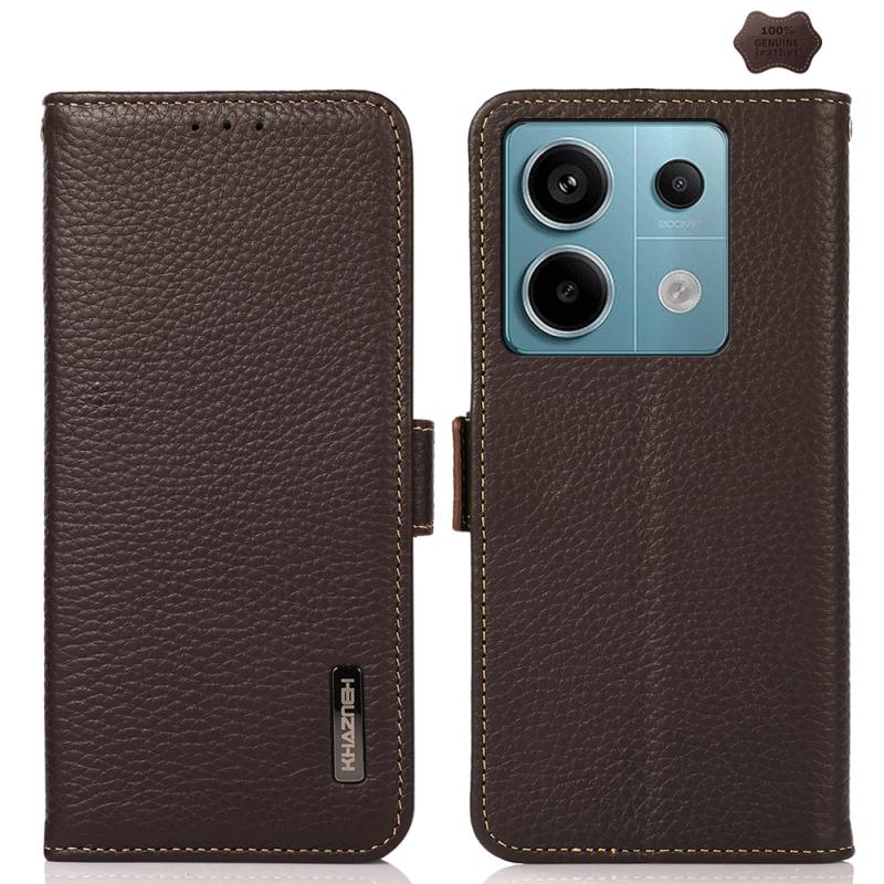 Για Xiaomi Redmi Note 13 KHAZNEH Δερμάτινη Θήκη με Μαγνητικό Κλείσιμο RFID (Καφέ)