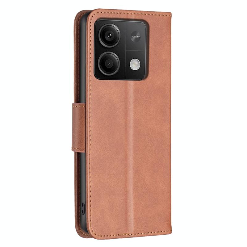 Θήκη τηλεφώνου από δέρμα με υφή δέρματος αρνιού και καθαρό χρώμα, τύπου flip, για Xiaomi Brownmi Note 13 (Καφέ)