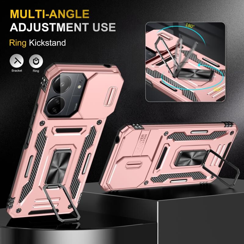 Για Xiaomi Redmi Note 13 Pro 4G θωράκιση PC + TPU κάμερα ασπίδα τηλέφωνο υπόθεση (Rose Gold)