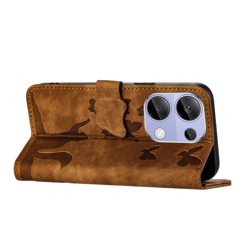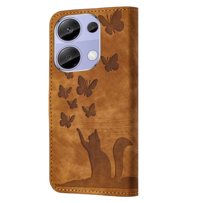 Θήκη βιβλίου δερμάτινη με ανάγλυφο σχέδιο γάτας για Xiaomi Redmi Note 13 Pro 4G (Καφέ)