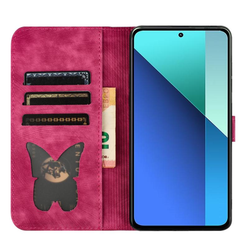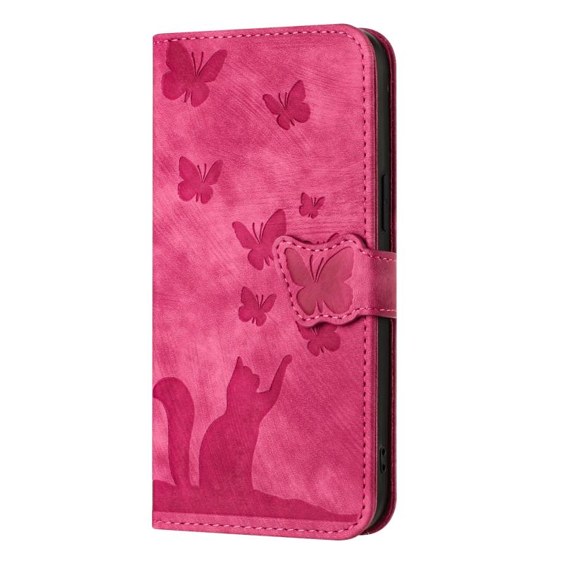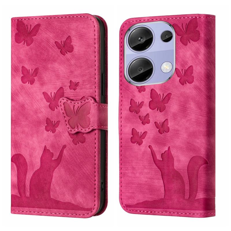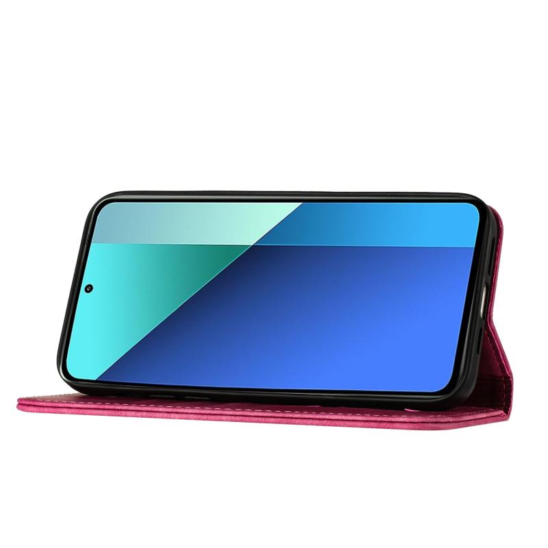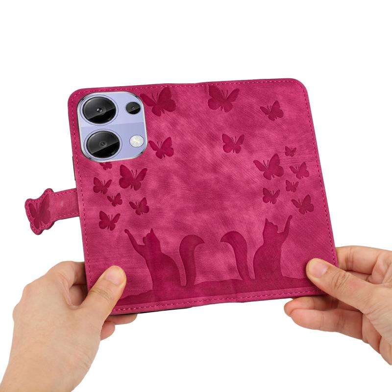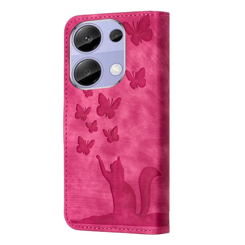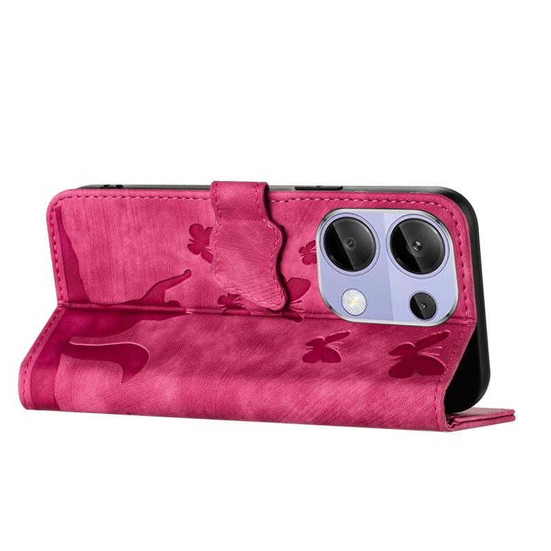 Θήκη βιβλίου δερμάτινη με ανάγλυφο σχέδιο γάτας για Xiaomi Redmi Note 13 Pro 4G (Ροζ)