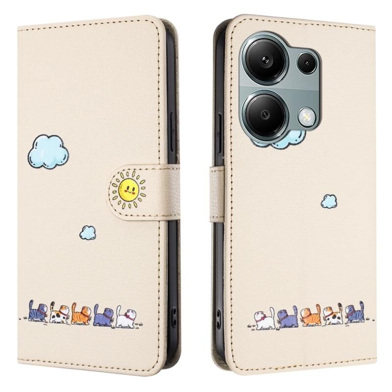 Θήκη τηλεφώνου από δέρμα με σχέδια χαριτωμένων γατών για Xiaomi Beige Whitemi Note 13 Pro 4G (Κόκκινο)