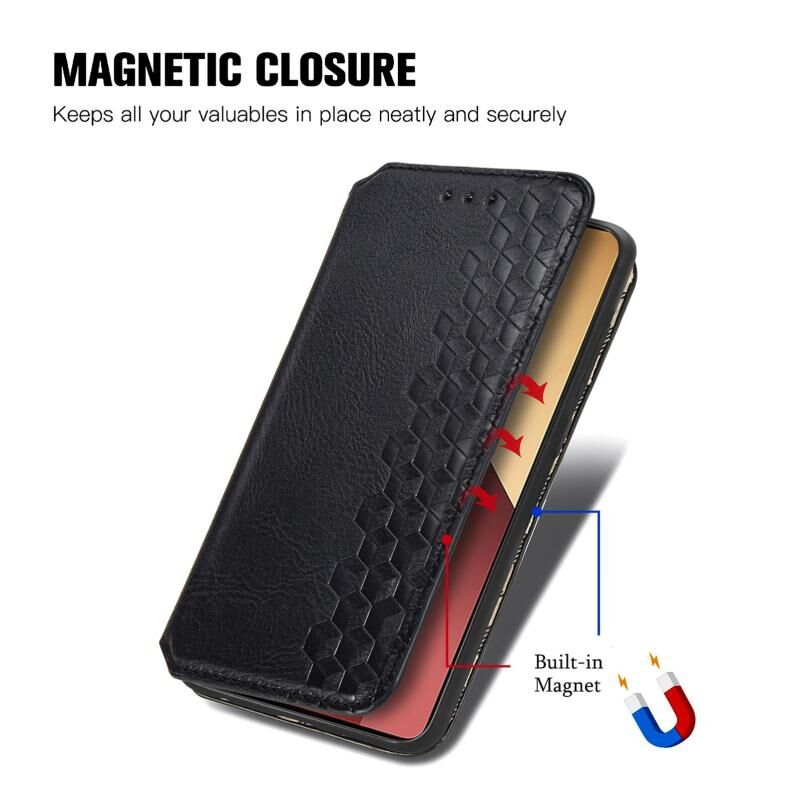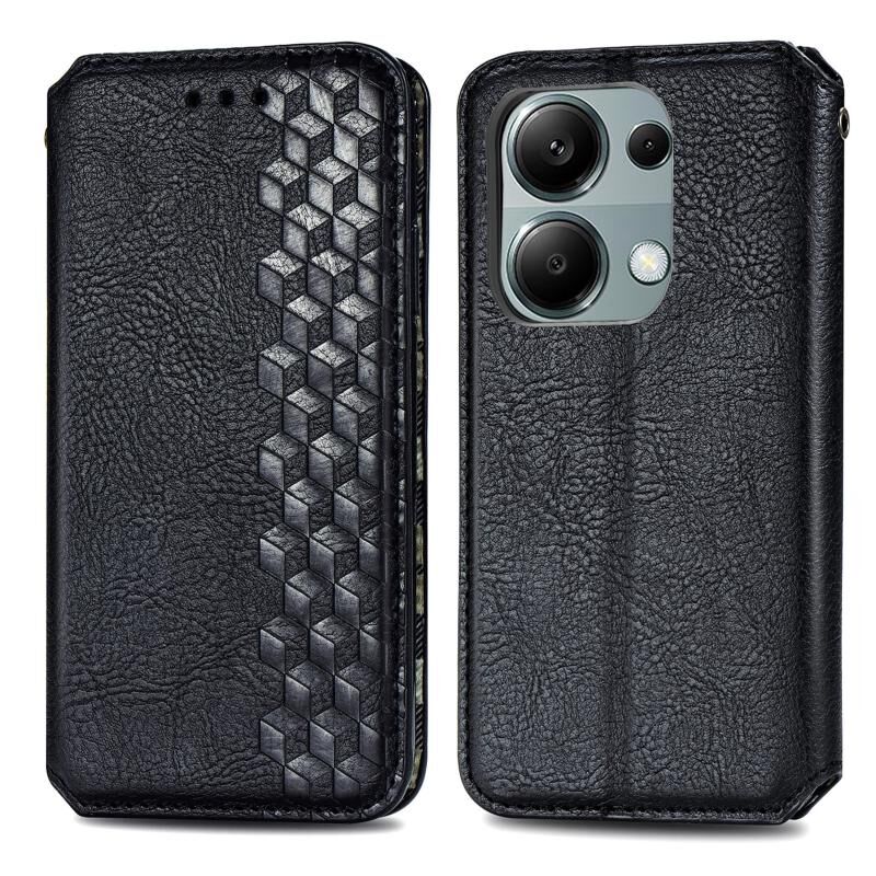 Για Xiaomi Redmi Note 13 Pro 4G Cubic Grid Pressed μαγνητική δερμάτινη θήκη τηλεφώνου (Μαύρο)