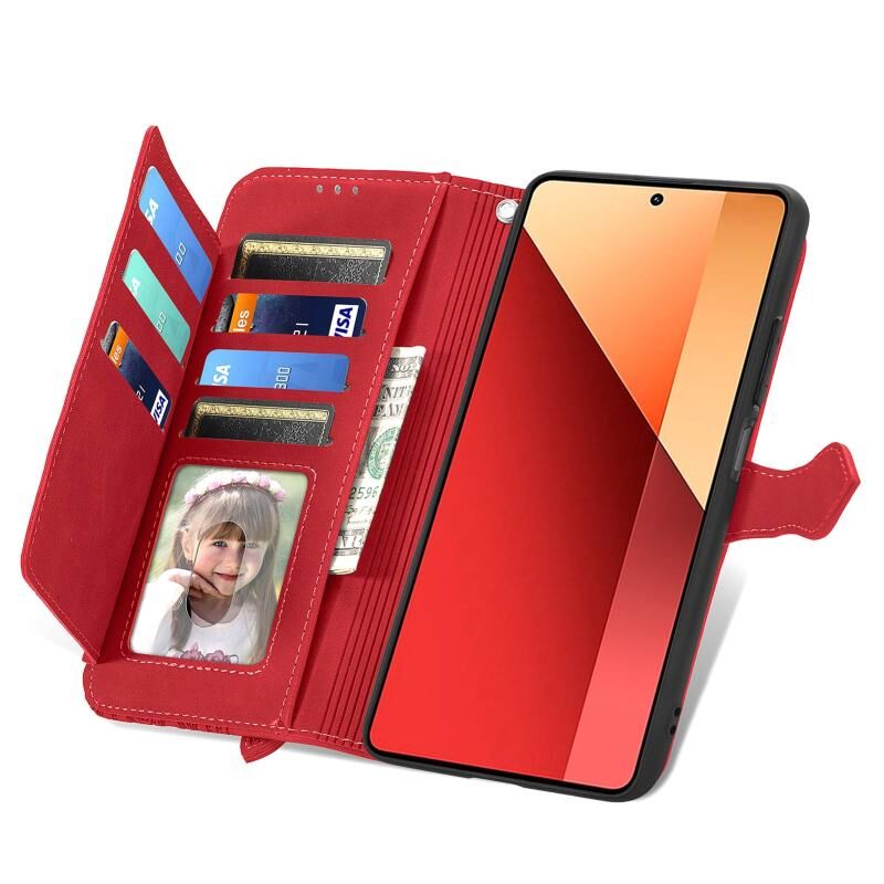 Θήκη τηλεφώνου δερμάτινη με ανάγλυφα λουλούδια και φερμουάρ για Xiaomi Redmi Note 13 Pro 4G (Καφέ)