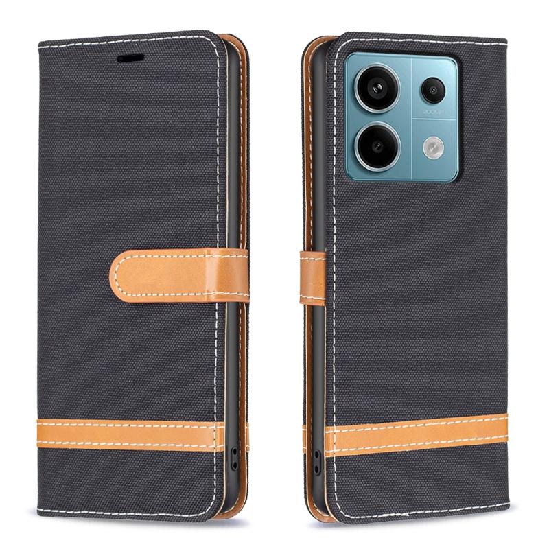Θήκη τηλεφώνου Xiaomi Redmi Note 13 Pro 4G Global με υφή denim και δερμάτινη υφή σε μπλοκ χρωμάτων (Μαύρο)