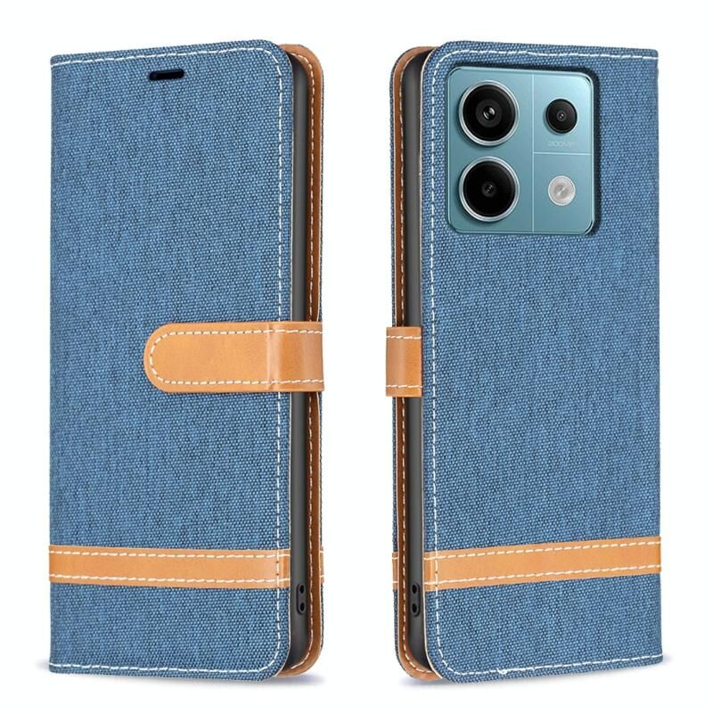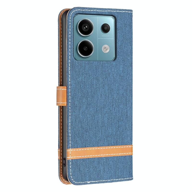 Θήκη τηλεφώνου Xiaomi Redmi Note 13 Pro 4G Global με υφή denim και δερμάτινη υφή σε μπλοκ χρωμάτων (Σκούρο μπλε)