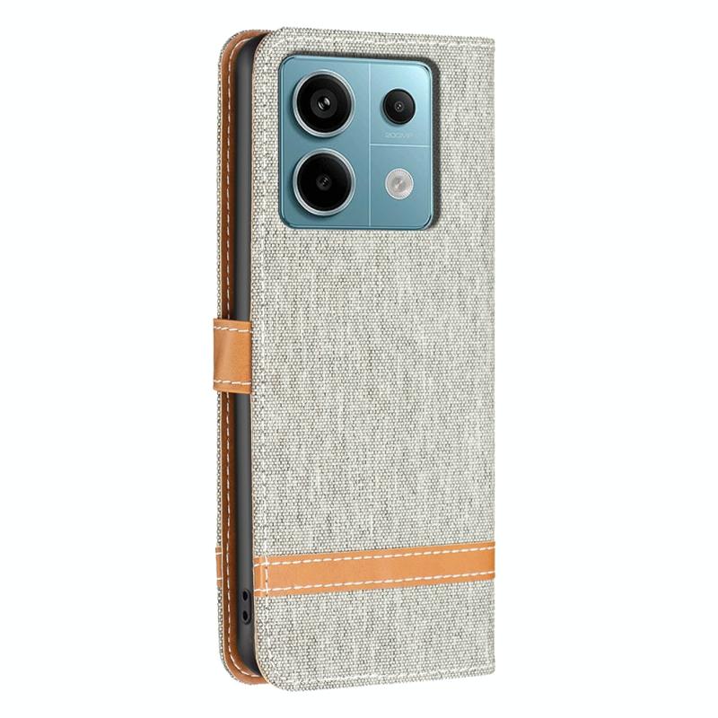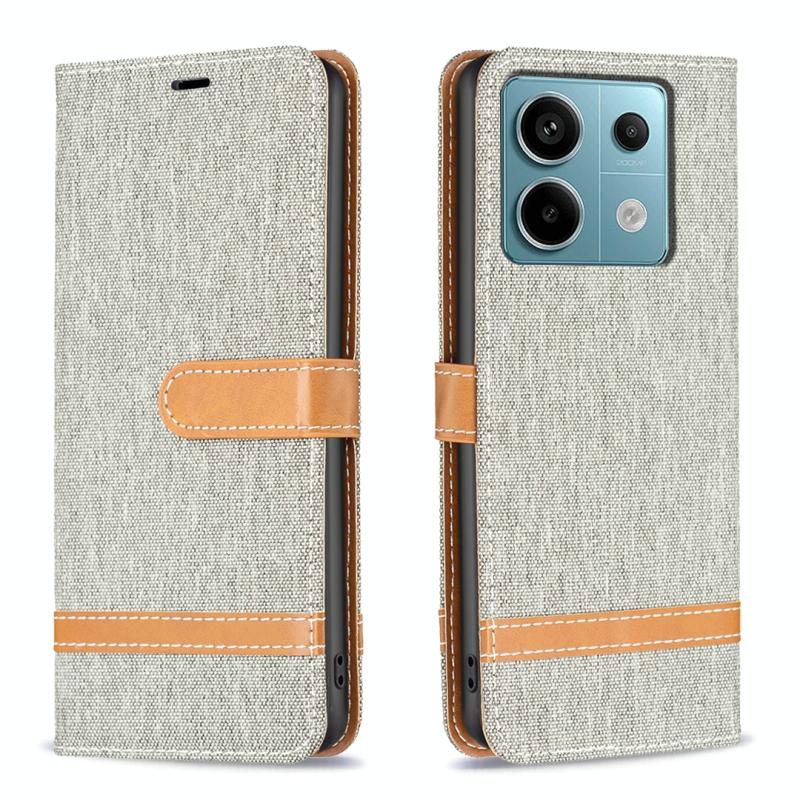 Θήκη τηλεφώνου Xiaomi Redmi Note 13 Pro 4G Global με υφή denim και δερμάτινη υφή σε μπλοκ χρωμάτων (Γκρι)