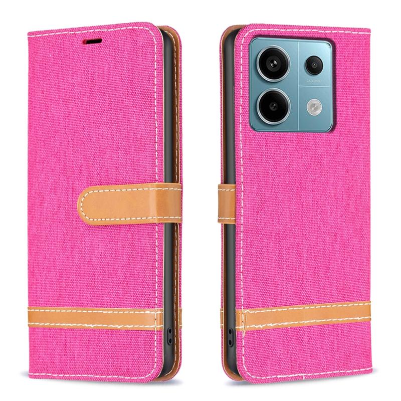 Θήκη τηλεφώνου Xiaomi Redmi Note 13 Pro 4G Global με υφή denim και δερμάτινη υφή σε μπλοκ χρωμάτων (Ροζέ κόκκινο)