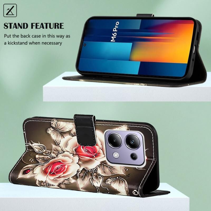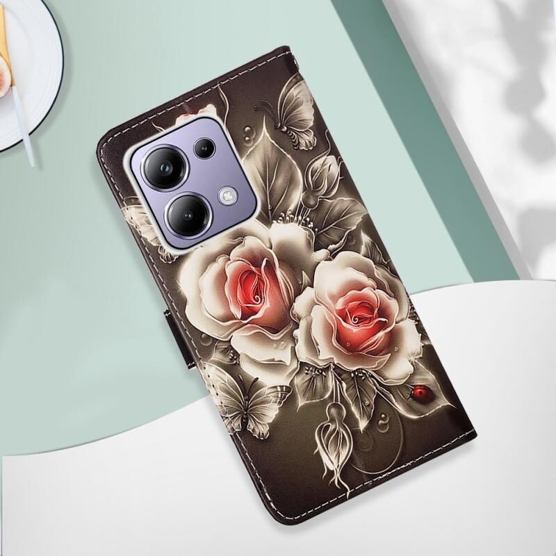 Θήκη τηλεφώνου από δέρμα με απλή ύφανση και πολύχρωμο σχέδιο για Xiaomi Redmi Note 13 Pro 4G Global (Τριαντάφυλλα σε μαύρο)