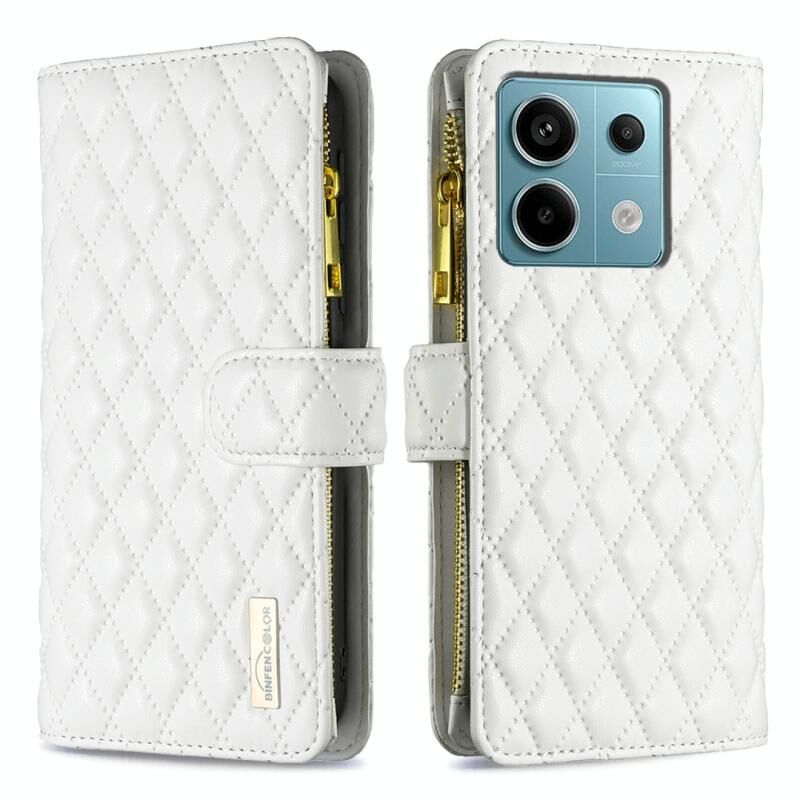 Για Xiaomi Redmi Note 13 Pro 4G Global Diamond Lattice φερμουάρ πορτοφόλι δέρμα Flip υπόθεση τηλεφώνου (Λευκό)