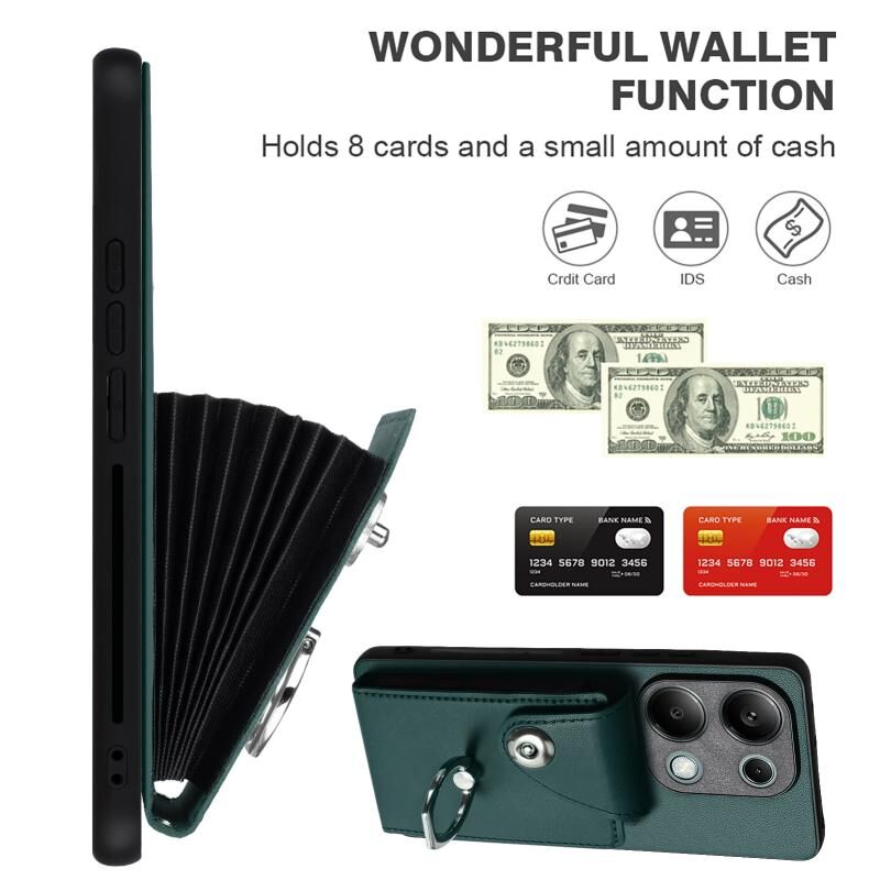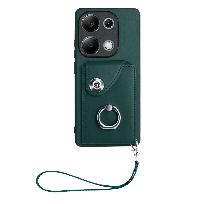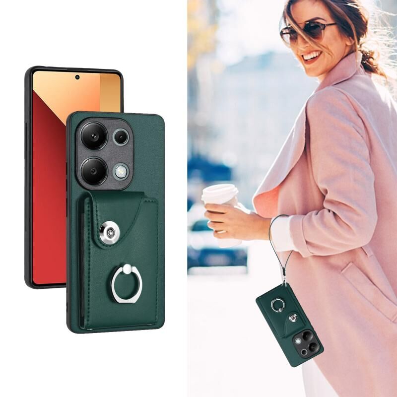 Για Xiaomi Redmi Σημείωση 13 Pro 4G Παγκόσμια Οργάνων κάρτα τσάντα δαχτυλίδι κάτοχος PU τηλέφωνο υπόθεση με κορδόνι (πράσινο)