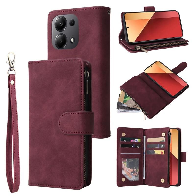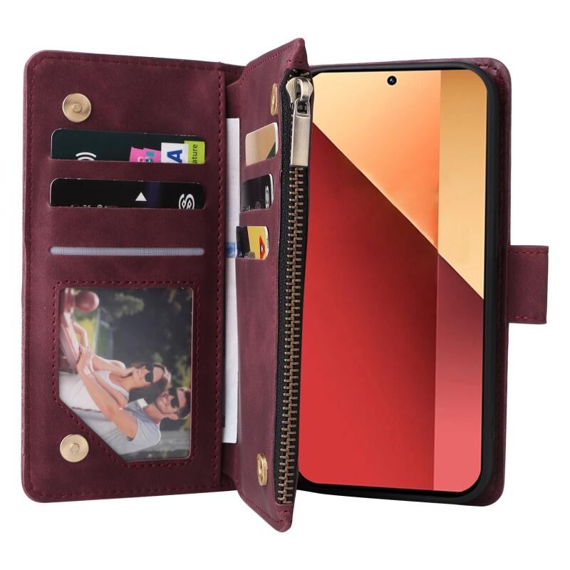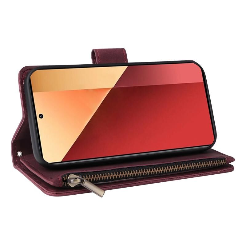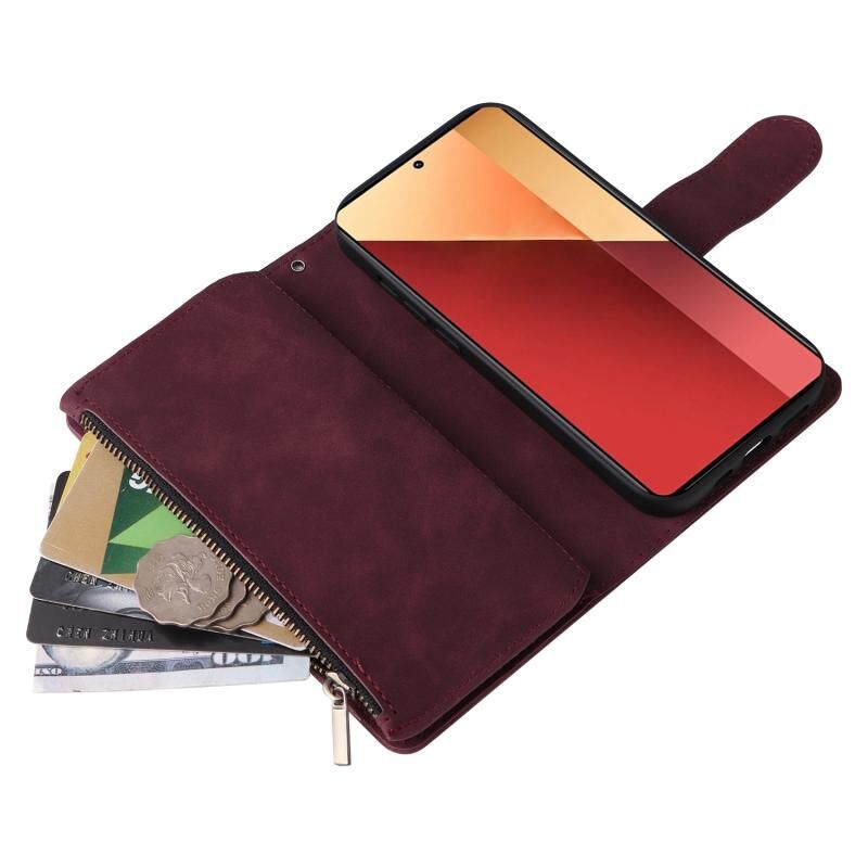 Για Xiaomi Redmi Note 13 Pro 4G Πολυλειτουργικό παγωμένο φερμουάρ πορτοφόλι δερμάτινη θήκη τηλεφώνου (Κρασοκόκκινο)