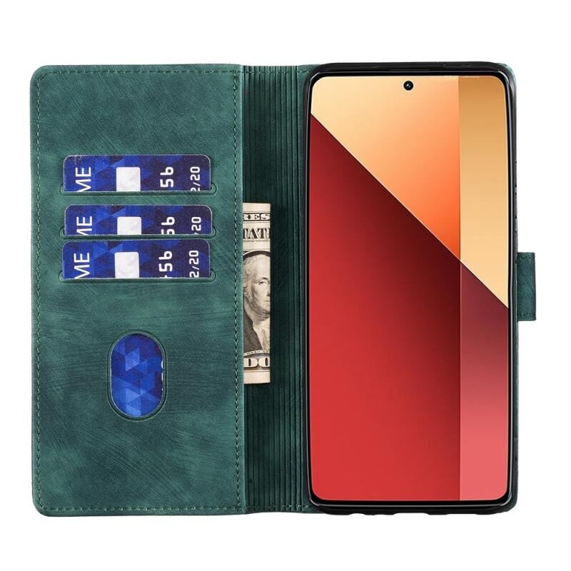 6. Λειτουργία Πορτοφολιού: Η δερμάτινη θήκη είναι εξοπλισμένη με τρεις υποδοχές καρτών και ένα διαμέρισμα για μετρητά, που μπορούν να χωρέσουν κάρτες και ένα μικρό ποσό χαρτονομισμάτων.