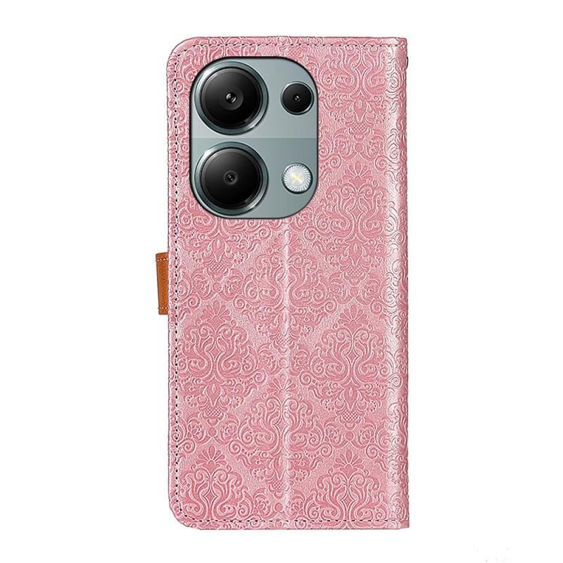 Για Xiaomi Redmi Note 13 Pro 4G/Poco M6 Pro 4G Ευρωπαϊκή Floral ανάγλυφη δερμάτινη θήκη τηλεφώνου (ρόζ)