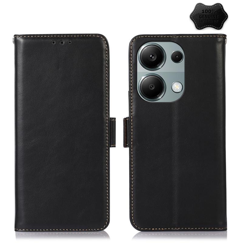 For Xiaomi Redmi Note 13 Pro 4G/Poco M6 Pro Magnetic Crazy Horse Texture Genuine Leather RFID Phone Case(Black)