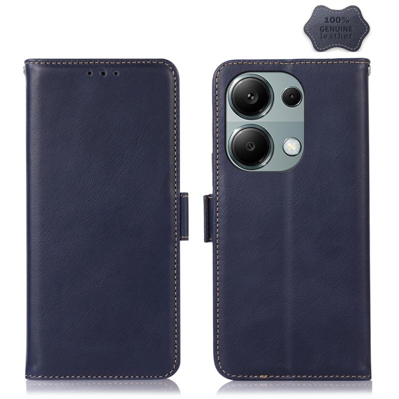 For Xiaomi Redmi Note 13 Pro 4G/Poco M6 Pro Magnetic Crazy Horse Texture Genuine Leather RFID Phone Case(Blue)