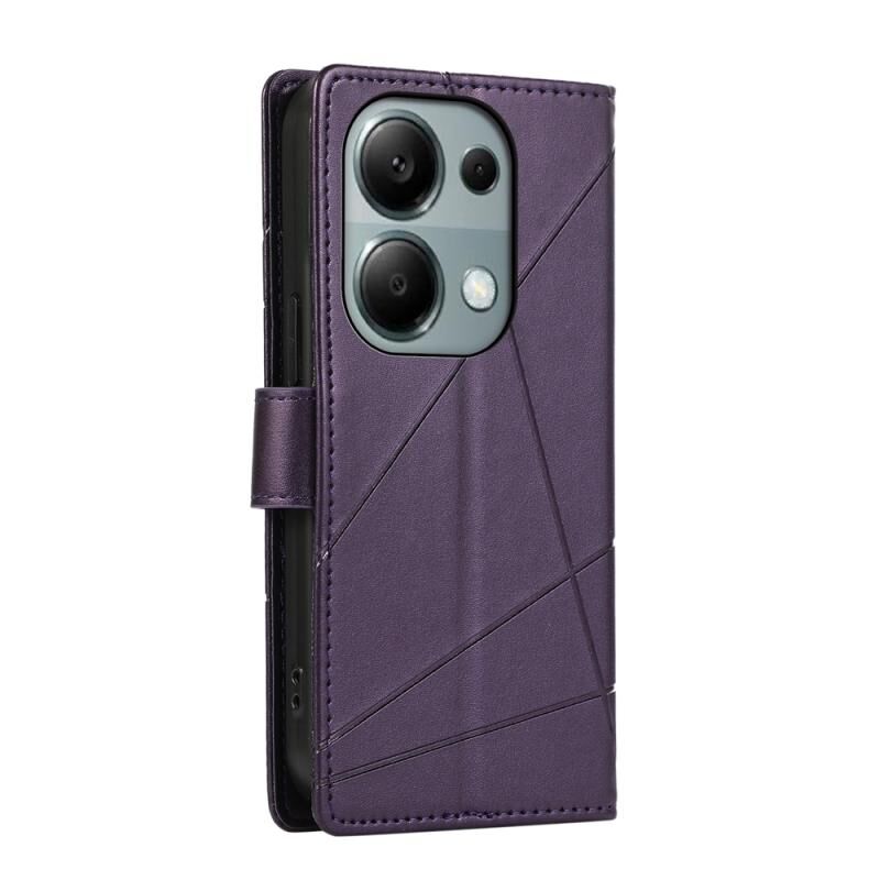 Θήκη τηλεφώνου Xiaomi Redmi Note 13 Pro 4G από γνήσιο δέρμα PU με ανάγλυφη υφή και γραμμές (Μπλε)
