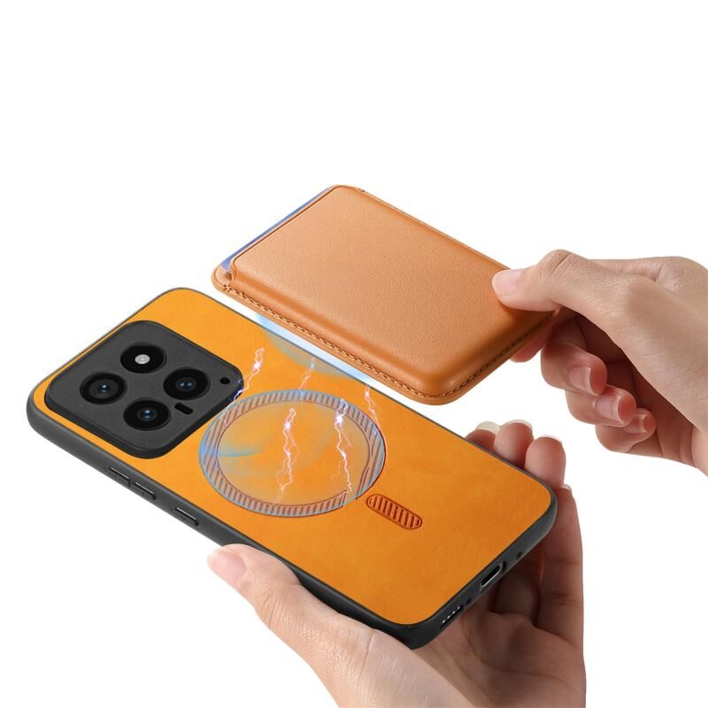 Για Xiaomi Redmi Note 13 Pro 4G Ρετρό Θήκη Κάρτας Magsafe, Μαλακή Θήκη Πίσω Καπακιού από PU (Κίτρινο)