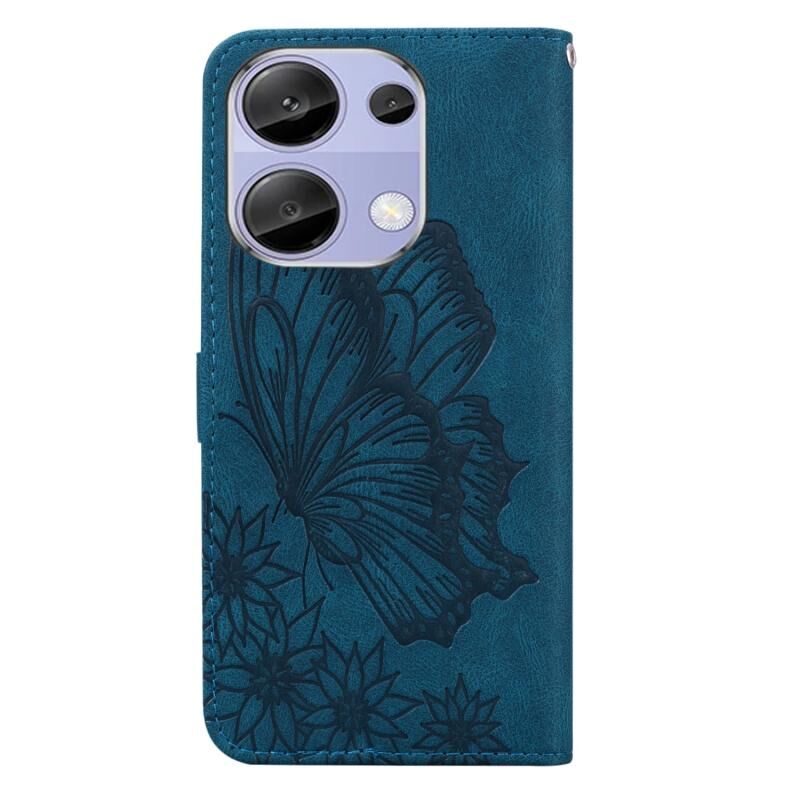 Θήκη τηλεφώνου δερμάτινη, οριζόντιας αναδίπλωσης, για Xiaomi Redmi Note 13 Pro 4G με ανάγλυφο σχέδιο πεταλούδων και υφή retro (Μαύρο)