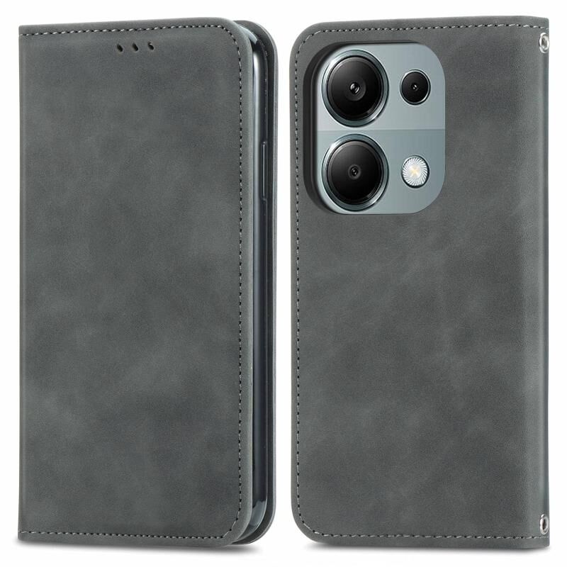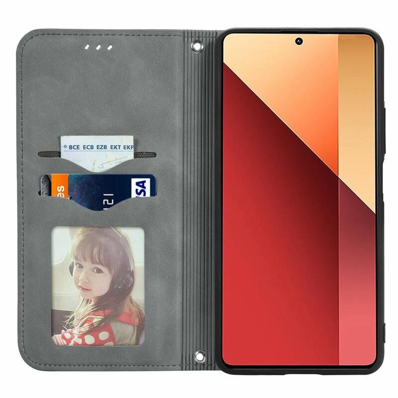 Για Xiaomi Redmi Note 13 Pro 4G ρετρό δέρμα αίσθηση μαγνητική Flip δέρμα τηλέφωνο υπόθεση (Γκρι)