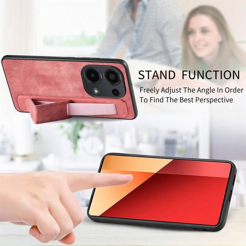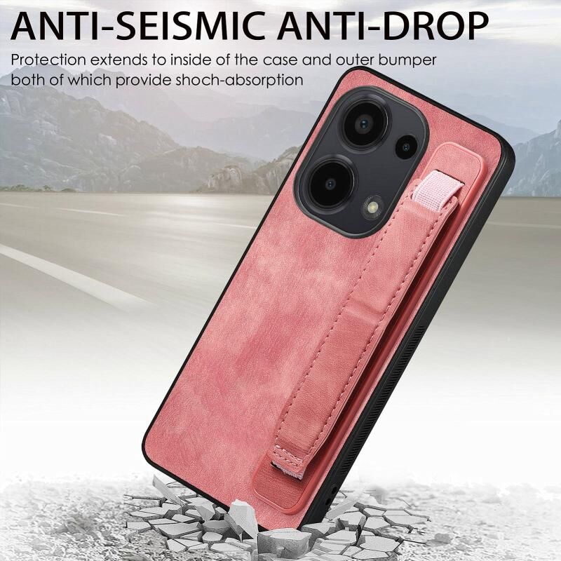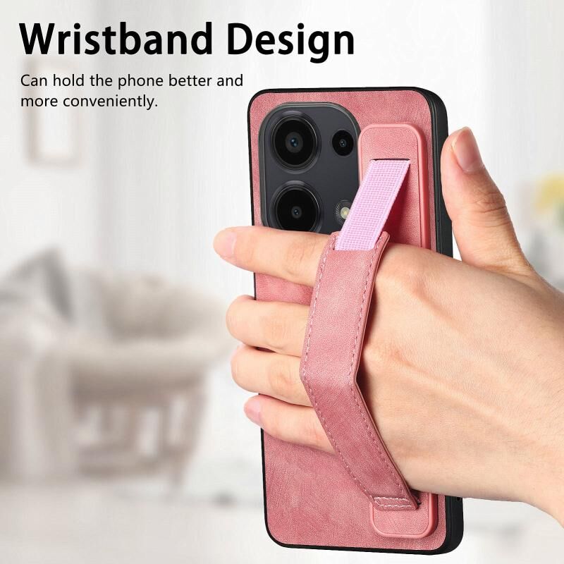 Για Xiaomi Redmi Note 13 Pro 4G Retro Wristband κάτοχος δέρμα πίσω τηλέφωνο υπόθεση (ρόζ)