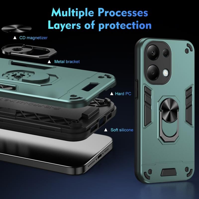 Θήκη κινητού τηλεφώνου για Xiaomi Redmi Note 13 Pro 4G με μεταλλική βάση δακτυλιδιού και αντικραδασμική προστασία (Μαύρο)