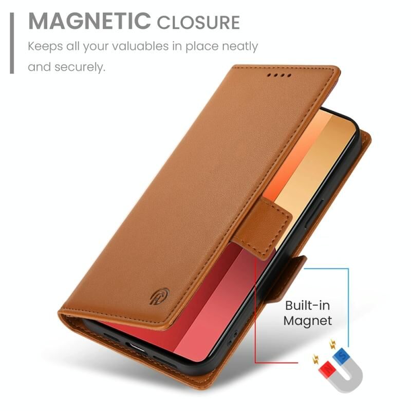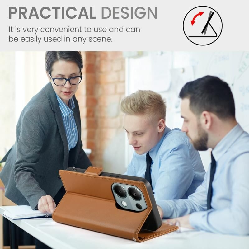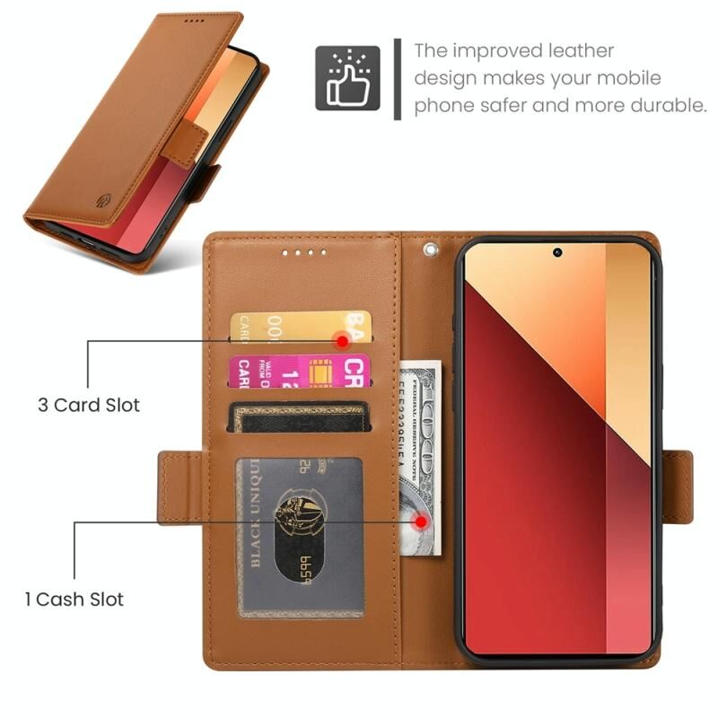 Για Xiaomi Redmi Note 13 Pro 4G Side πόρπη μαγνητική παγωμένη δερμάτινη θήκη τηλεφώνου (καφέ)