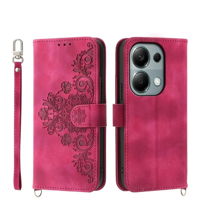 Για Xiaomi Redmi Note 13 Pro 4G δέρμα-συναίσθημα λουλούδια ανάγλυφο πορτοφόλι δερμάτινη θήκη τηλεφώνου (κόκκινο κρασί)