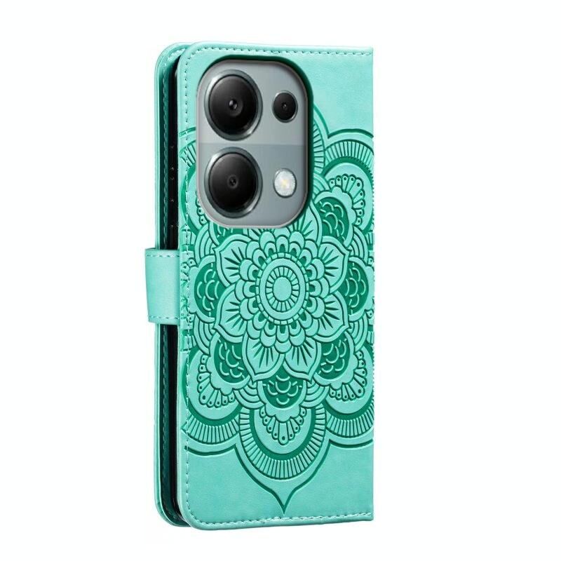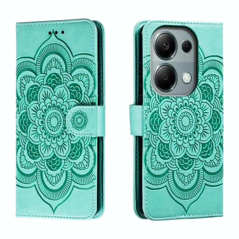 Για Xiaomi Redmi Note 13 Pro 4G Sun Mandala ανάγλυφο μοτίβο τηλέφωνο δερμάτινη θήκη (πράσινο)