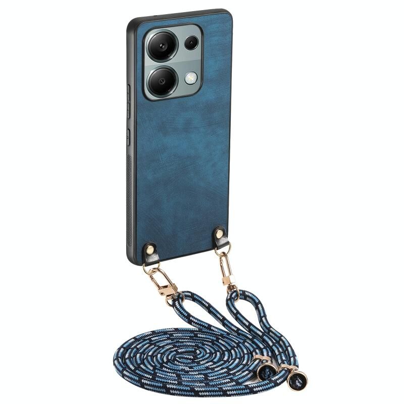 Για Xiaomi Redmi Note 13 Pro 4G εκλεκτής ποιότητας δέρμα PC πίσω κάλυμμα τηλέφωνο υπόθεση με λουράκι σταυρού (μπλε)