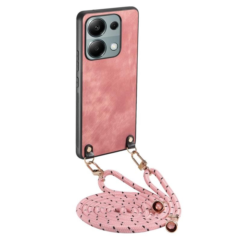 Για Xiaomi Redmi Note 13 Pro 4G εκλεκτής ποιότητας δέρμα PC πίσω κάλυμμα τηλέφωνο υπόθεση με λουράκι σταυρού (ροζ)