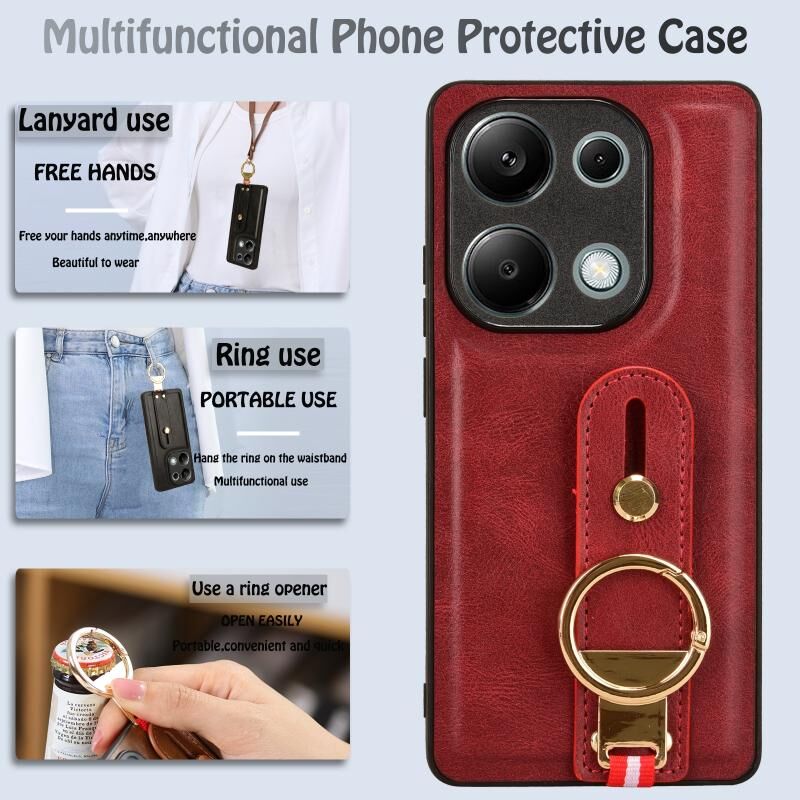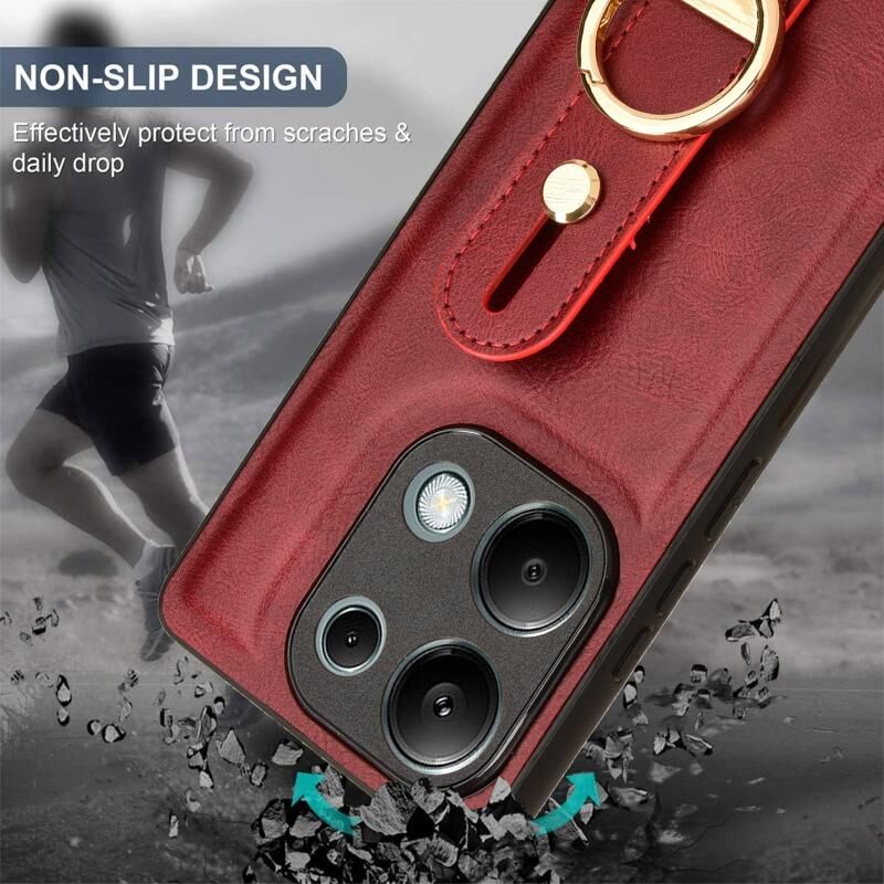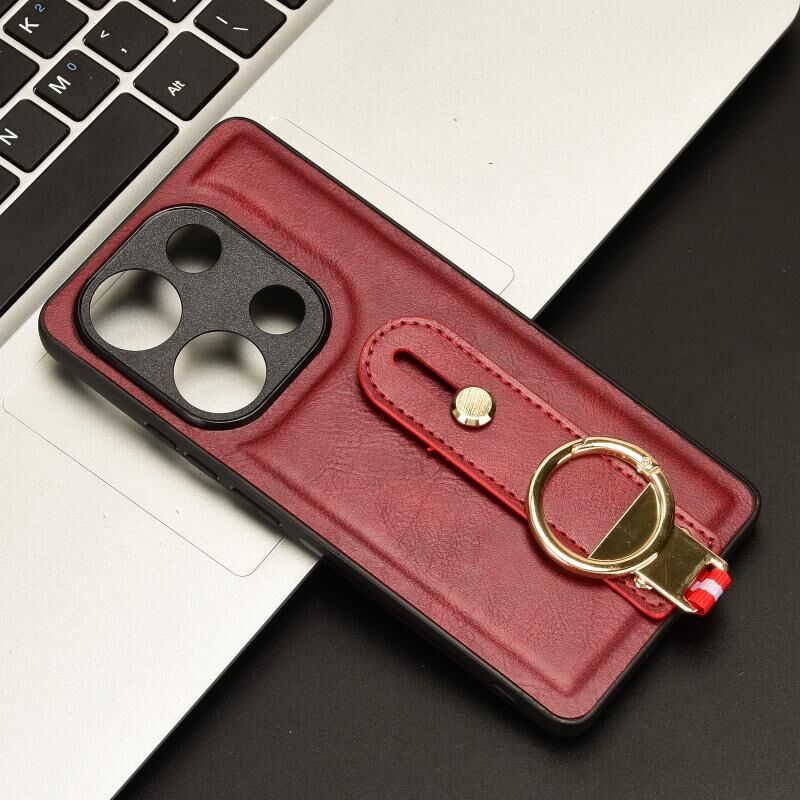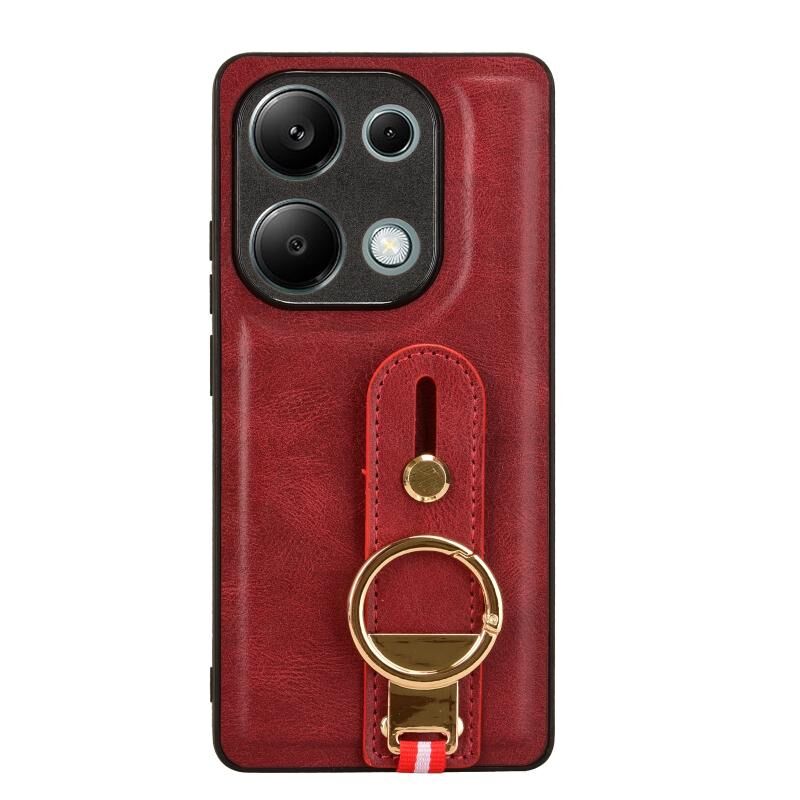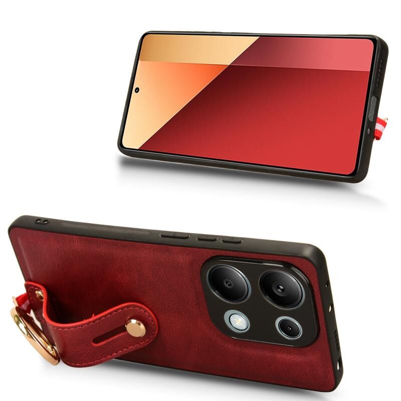 Για Xiaomi Redmi Note 13 Pro 4G Wristband δέρμα πίσω υπόθεση τηλεφώνου (κόκκινο)