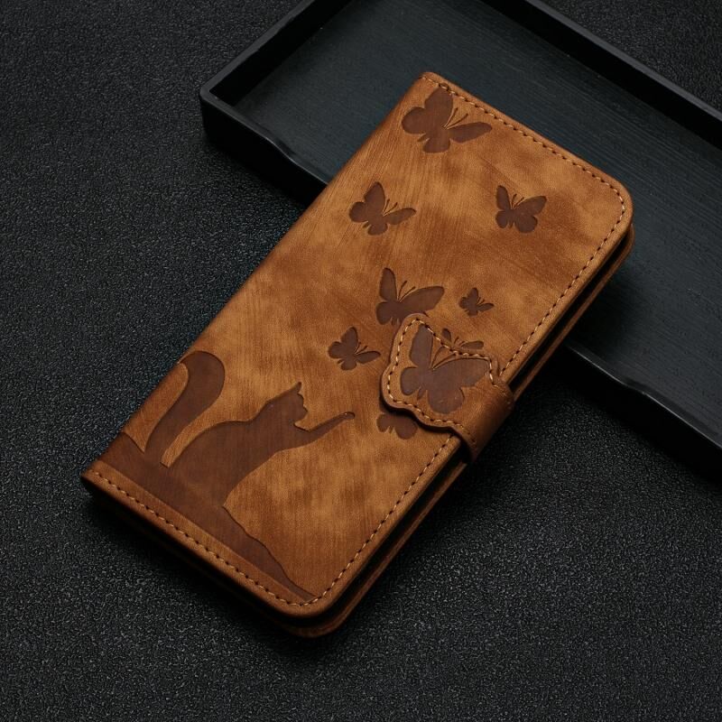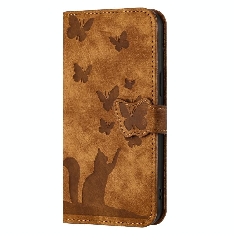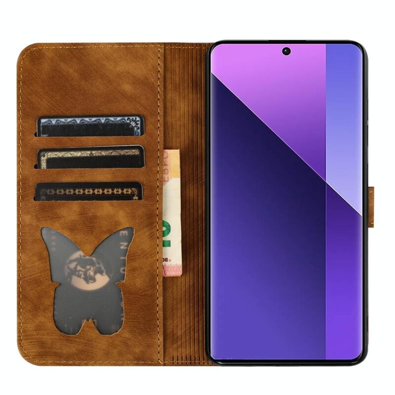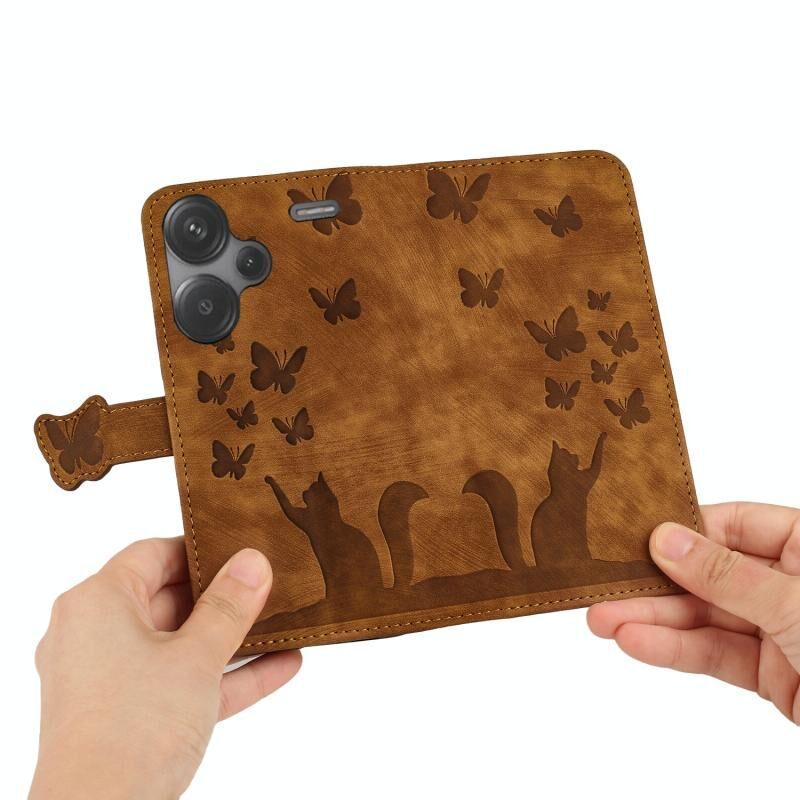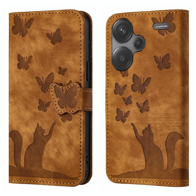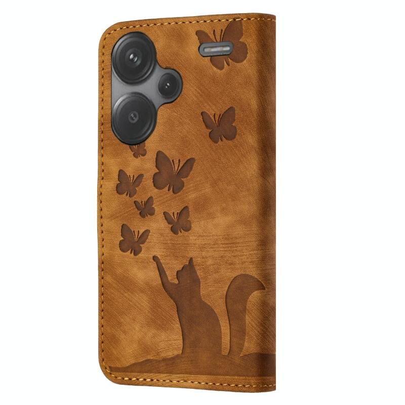 Θήκη δερμάτινη flip με ανάγλυφο σχέδιο γάτας για Xiaomi Redmi Note 13 Pro+ 5G (Καφέ)