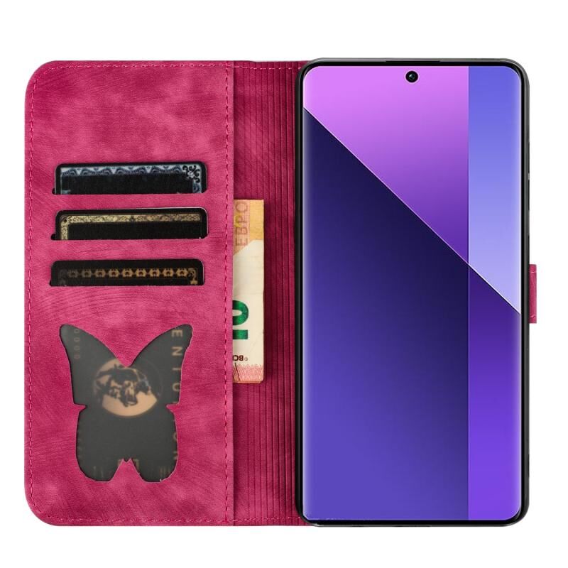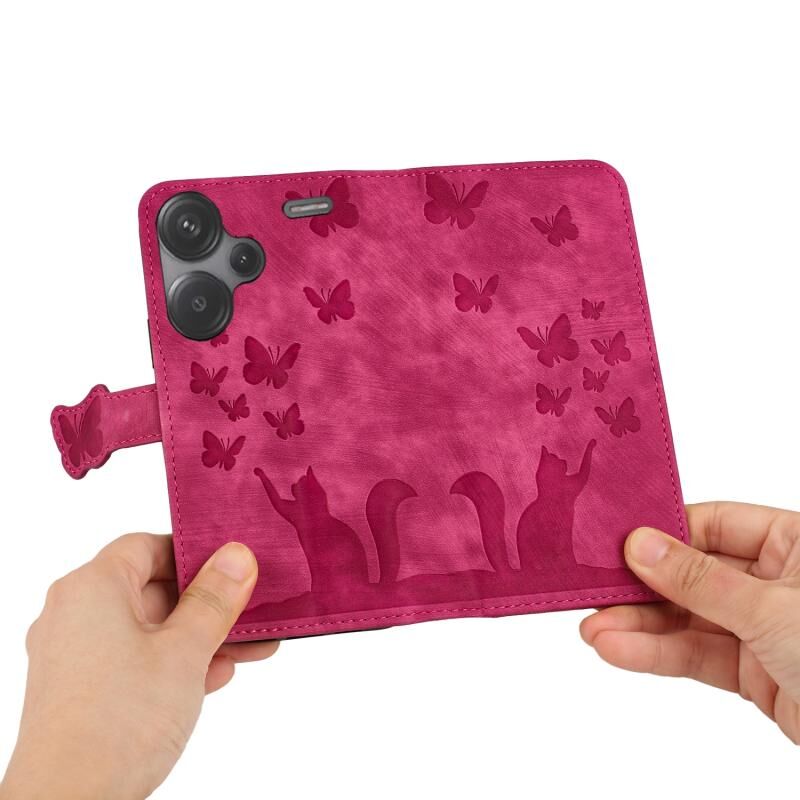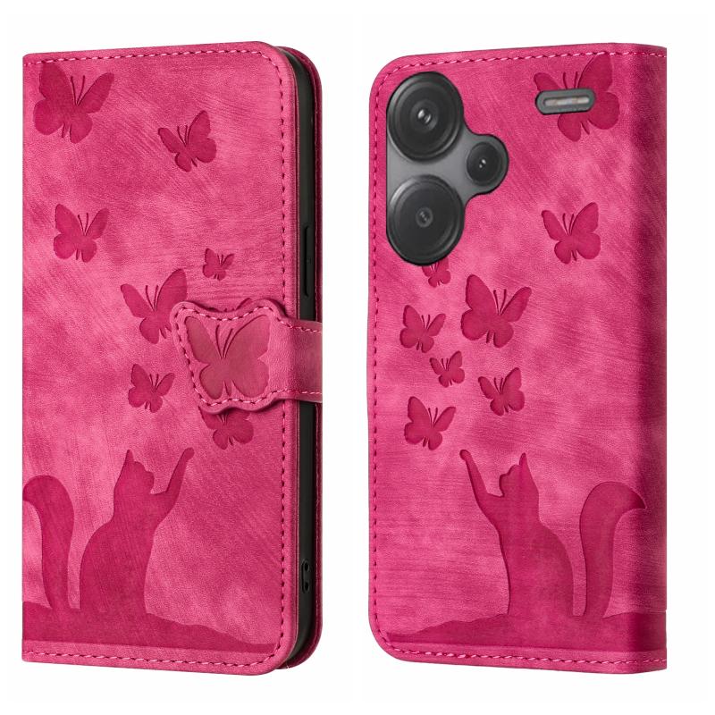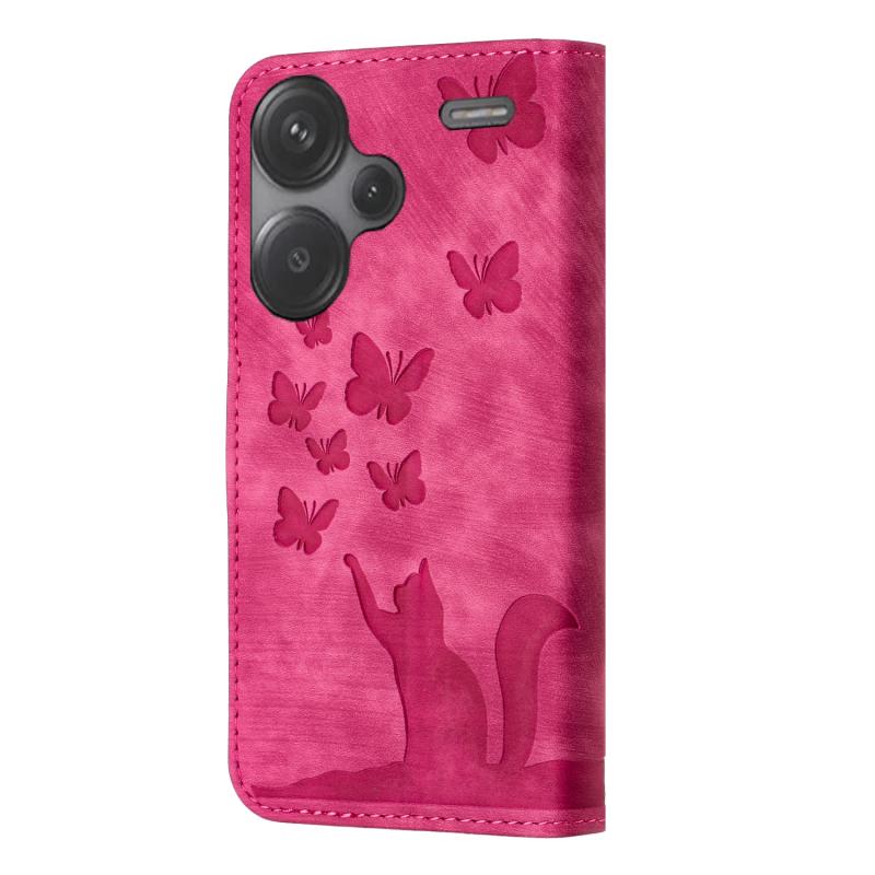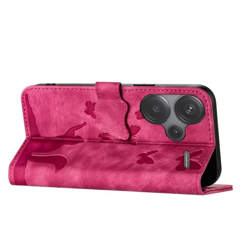 Θήκη δερμάτινη flip με ανάγλυφο σχέδιο γάτας για Xiaomi Redmi Note 13 Pro+ 5G (Ροζ)