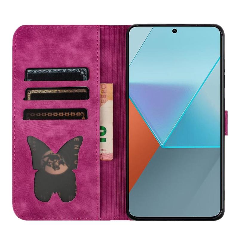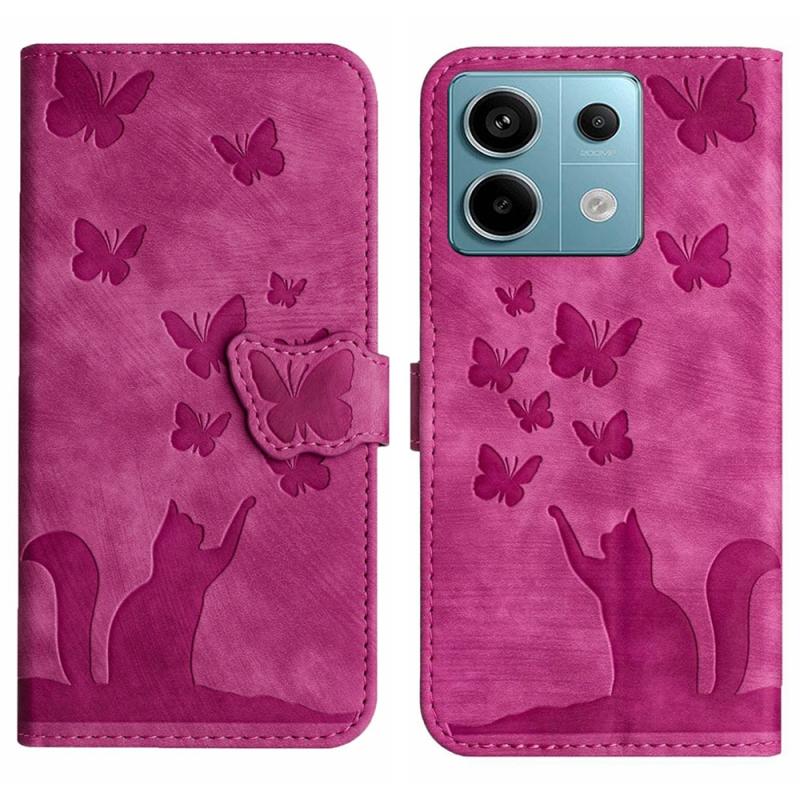 Για Xiaomi Redmi Note 13 Pro 5G Θήκη Δερμάτινη με ανάγλυφο σχέδιο πεταλούδας (Ροζ)