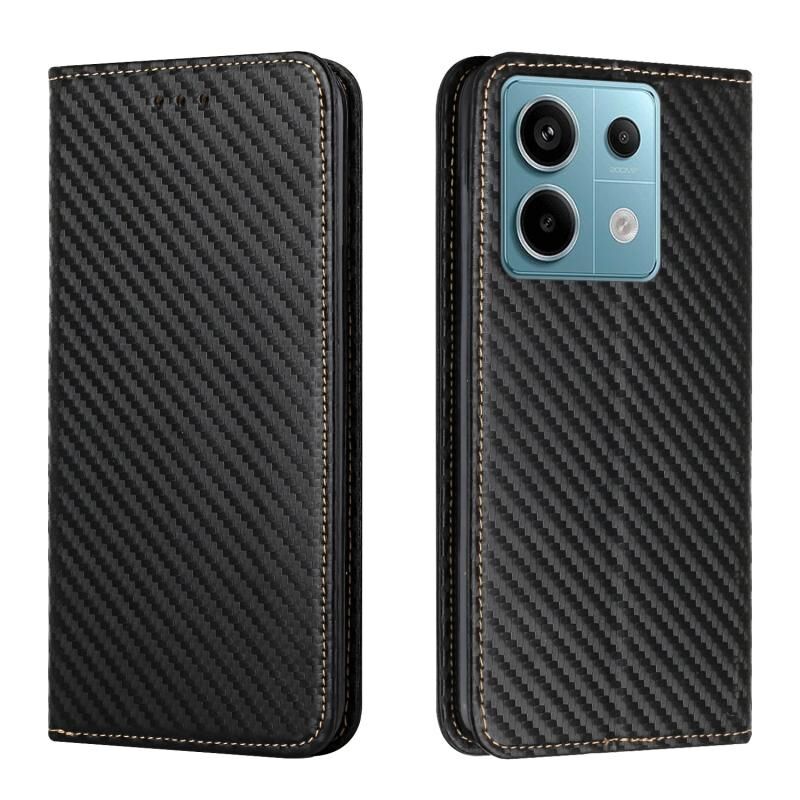 Θήκη τηλεφώνου δερμάτινη, τύπου βιβλίου, με υφή ανθρακονήματος για Xiaomi Redmi Note 13 Pro 5G (Μαύρο)