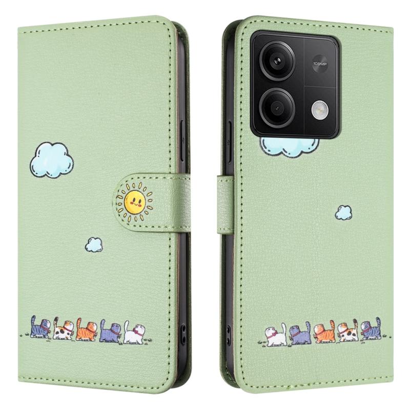 For Xiaomi Redmi Note 13 Pro 5G Cartoon Cats Leather Phone Case(Green)