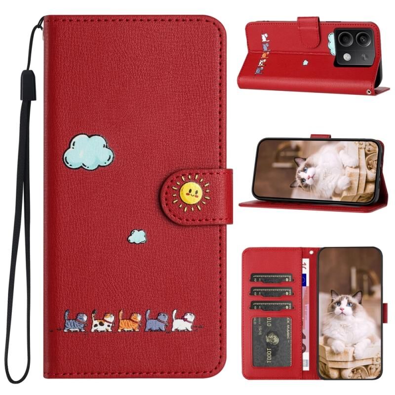 Θήκη τηλεφώνου από δέρμα με σχέδια χαριτωμένων γατών για Xiaomi Redmi Note 13 Pro 5G (Κόκκινο)