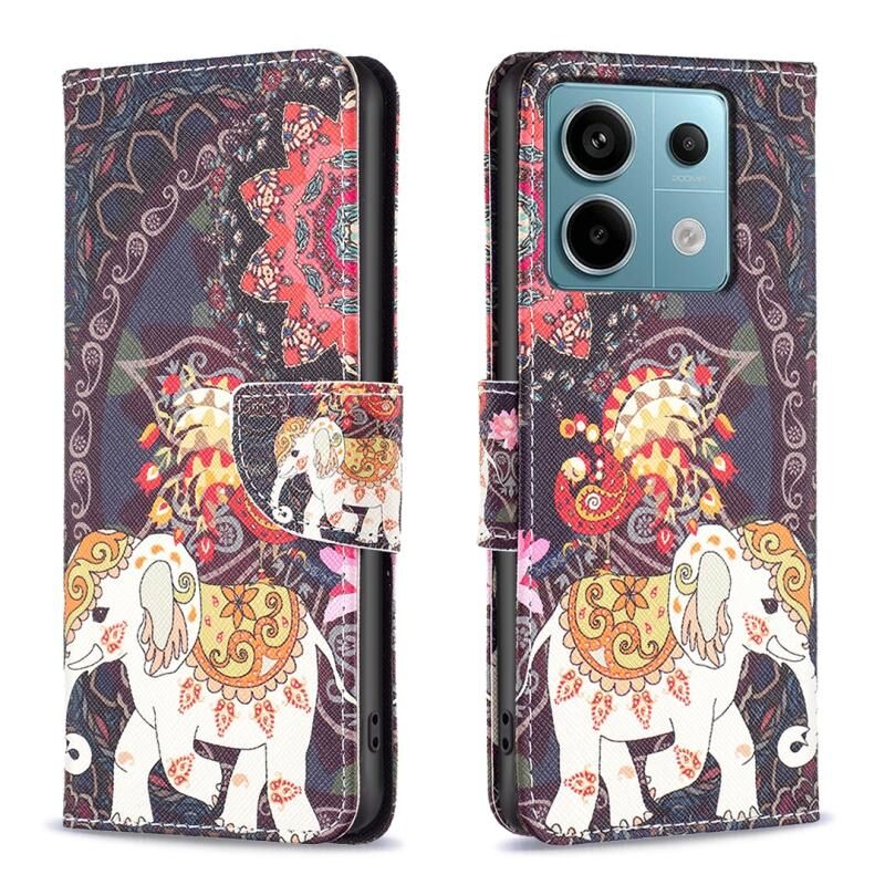 Θήκη τηλεφώνου από δέρμα με έγχρωμο σχέδιο (Λουλούδια Ελέφαντας) για Xiaomi Redmi Note 13 Pro 5G.