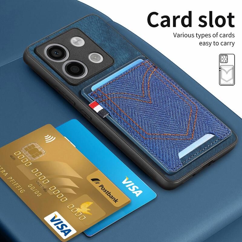 Για Xiaomi Redmi Note 13 Pro 5G Denim Υφή δέρμα δέρμα τηλέφωνο υπόθεση με υποδοχή κάρτας (καφέ)